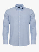 Camisa Regular Fit Dobby Azul Manga Comprida Com Bolso Lisa
