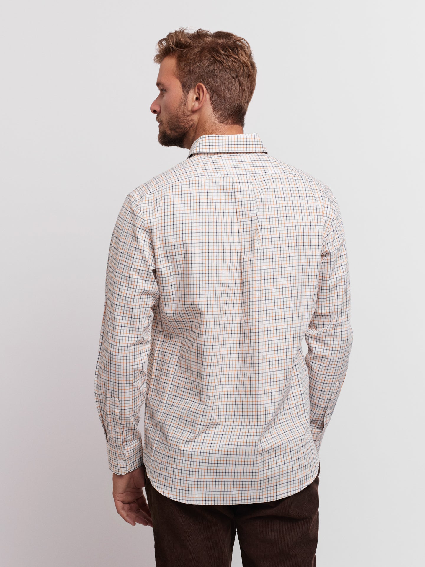 Camisa Regular Fit Bege Manga CompridaManga Comprida Quadrados Com Bolso