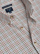 Camisa Regular Fit Vaiela Bege Algodão Quadrados Com bolso