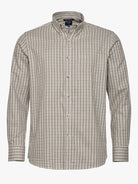 Camisa Regular Fit Vaiela Bege Algodão Quadrados Com bolso