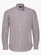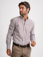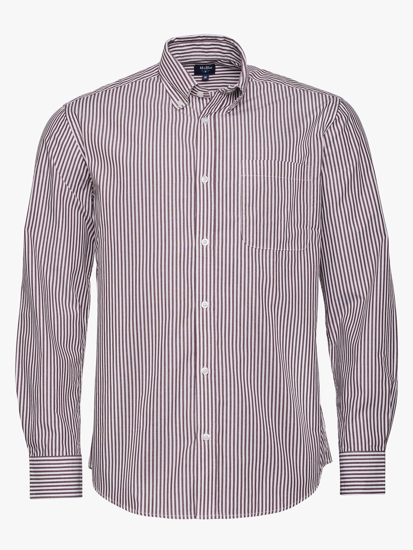 Camisa Regular Fit Popeline Castanha Algodão Riscas Com bolso