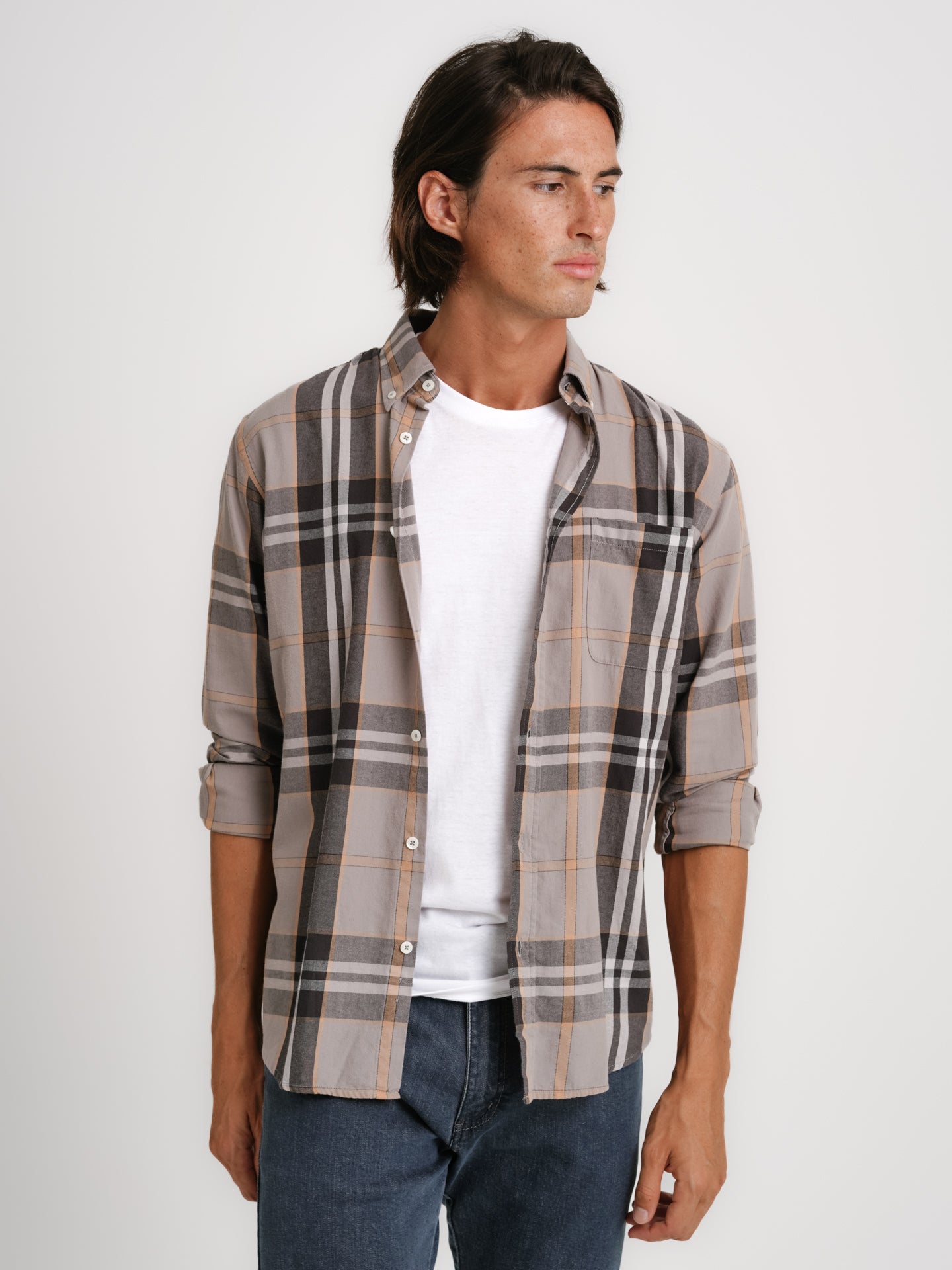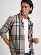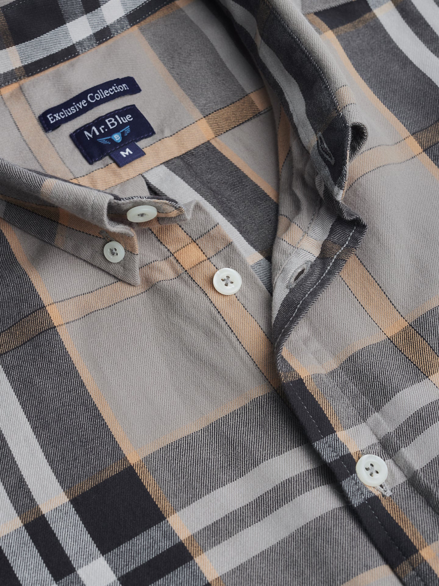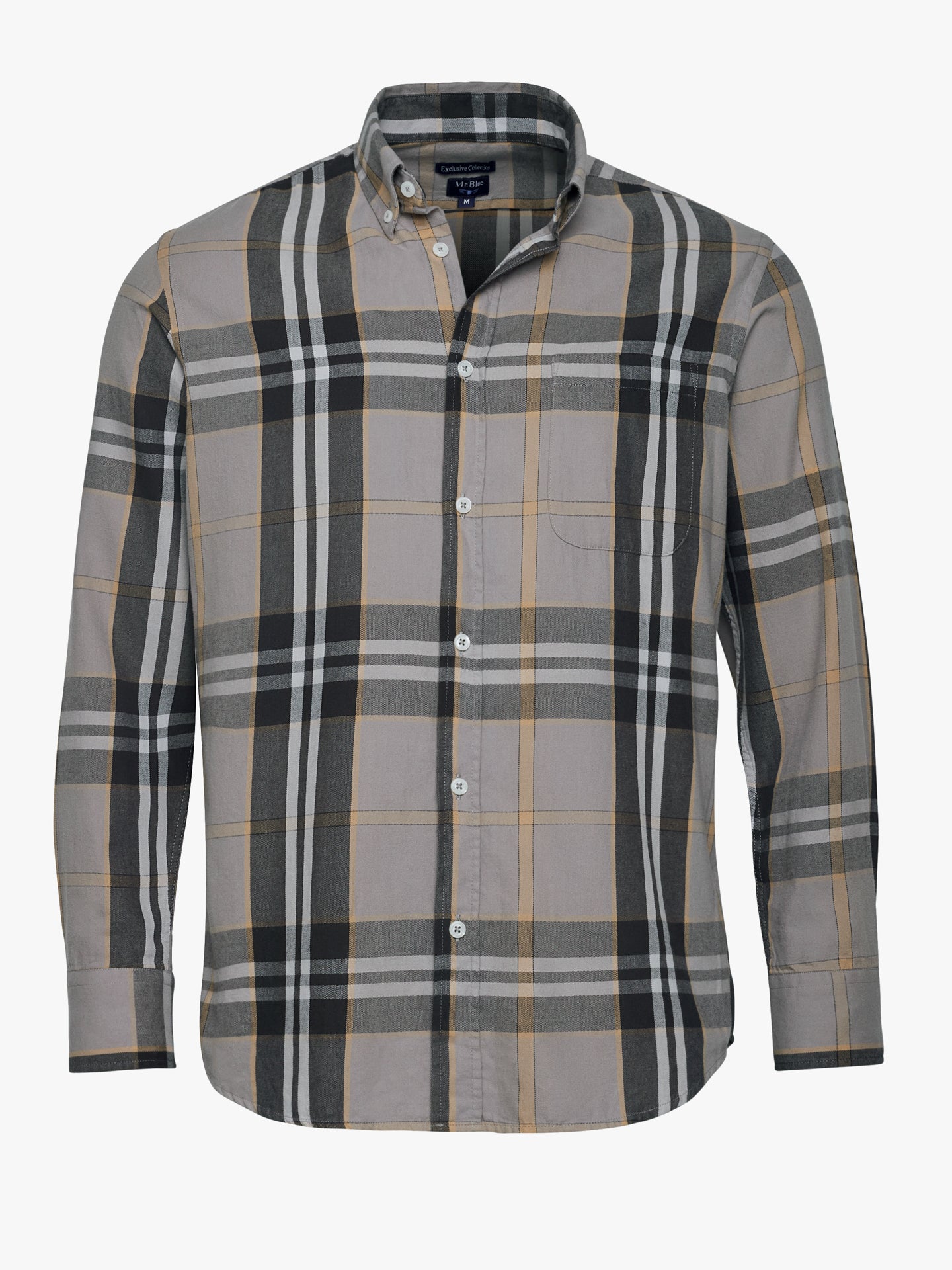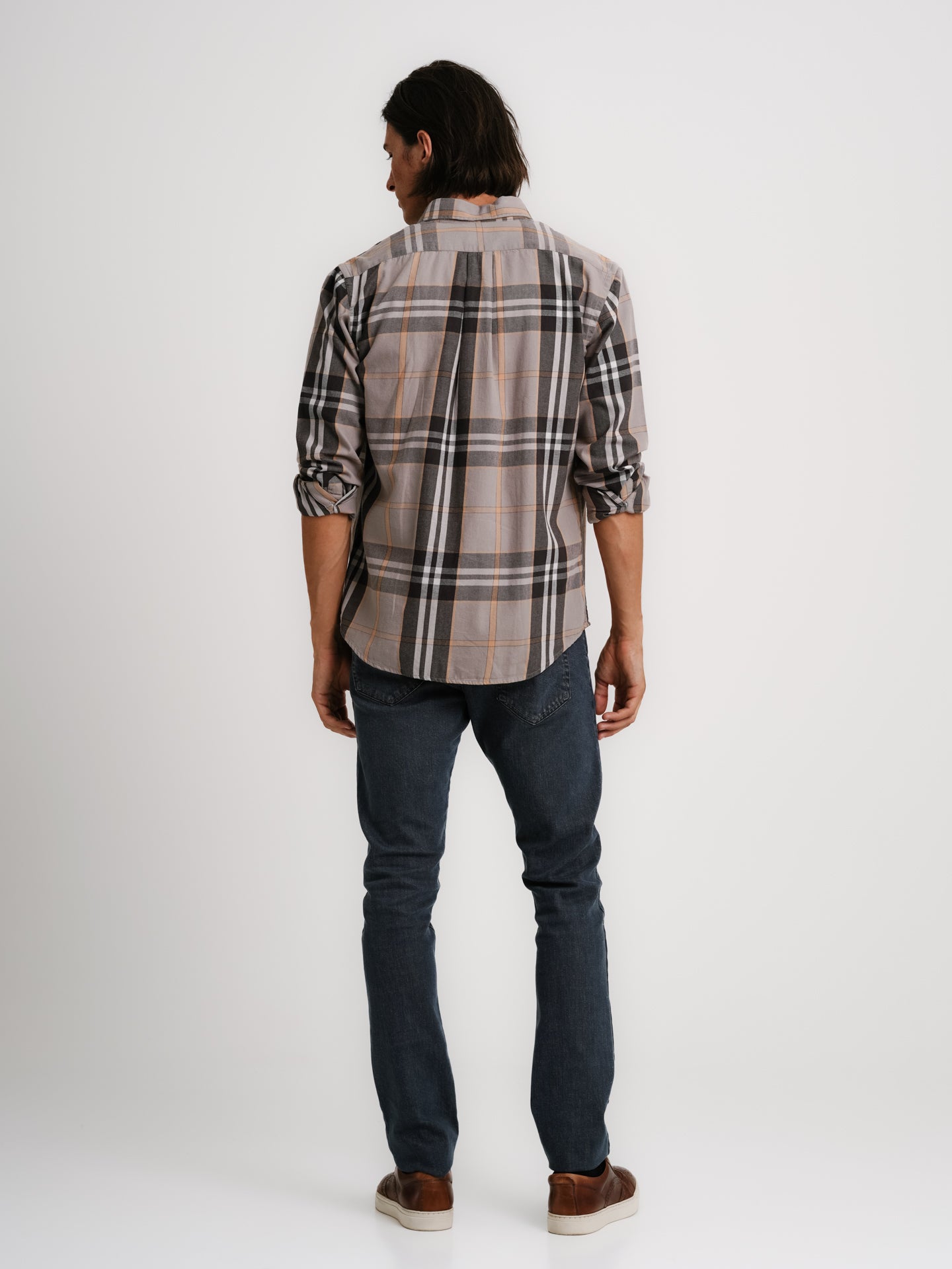 Camisa Regular Fit Flanela Cinzenta Algodão Quadrados