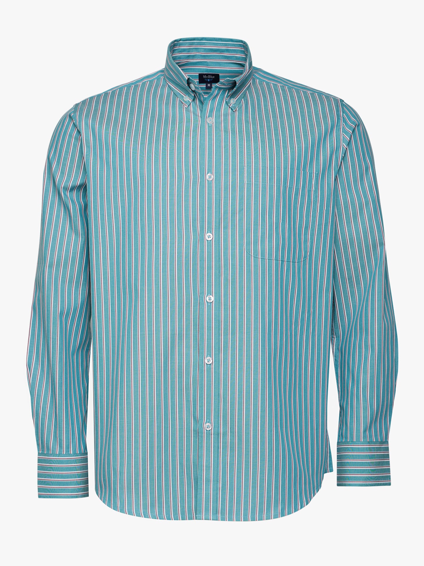 Camisa Regular Fit Oxford Verde Manga Comprida Com bolso às Riscas
