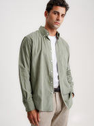 Camisa Regular Fit Bombazine Verde Manga Comprida Com Bolso Lisa