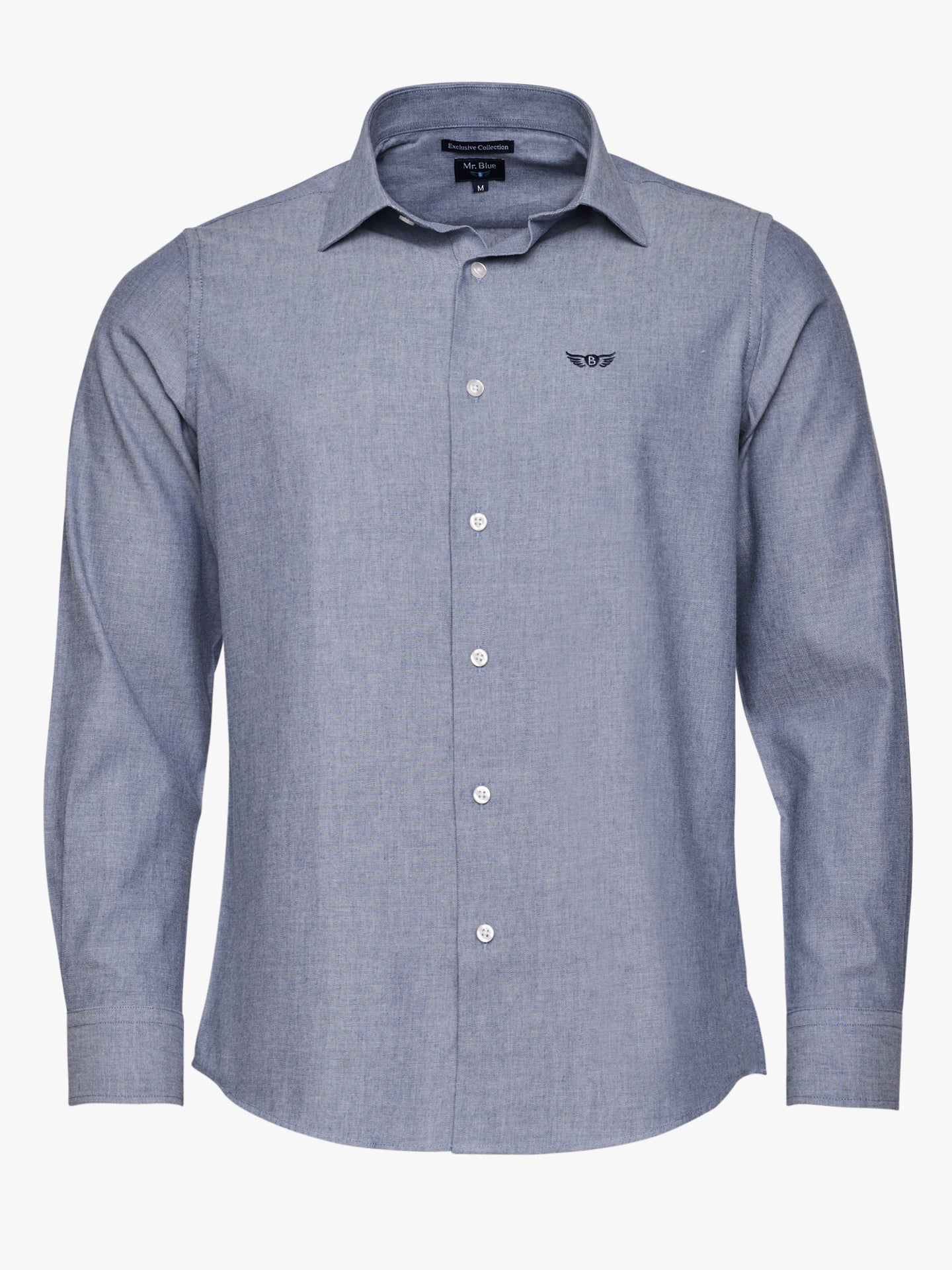 Camisa Slim Fit Twill Azul Algodão Liso Com logo