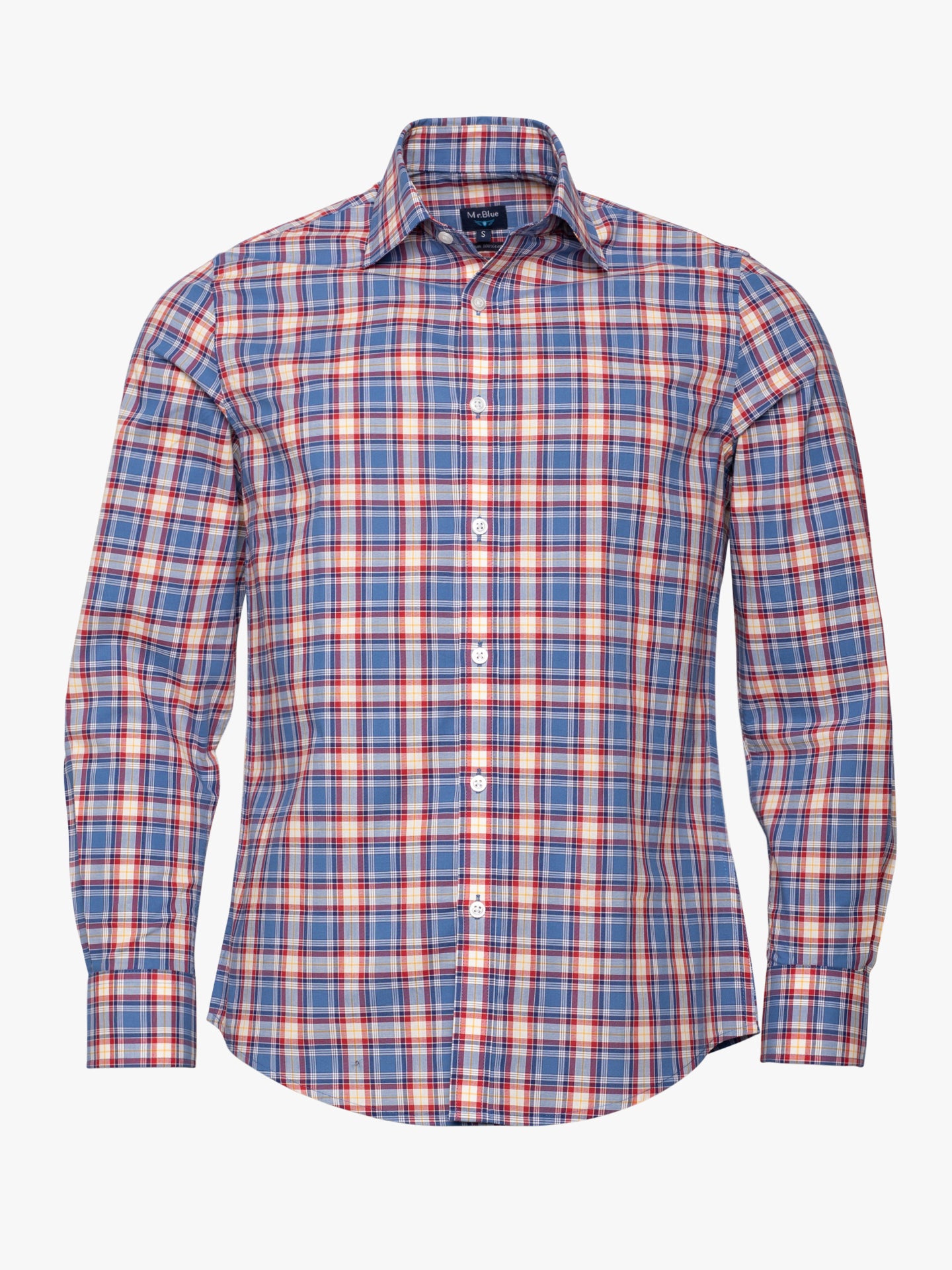 Camisa Slim Fit Azul aos quadrados Vermelho e Branco para homem