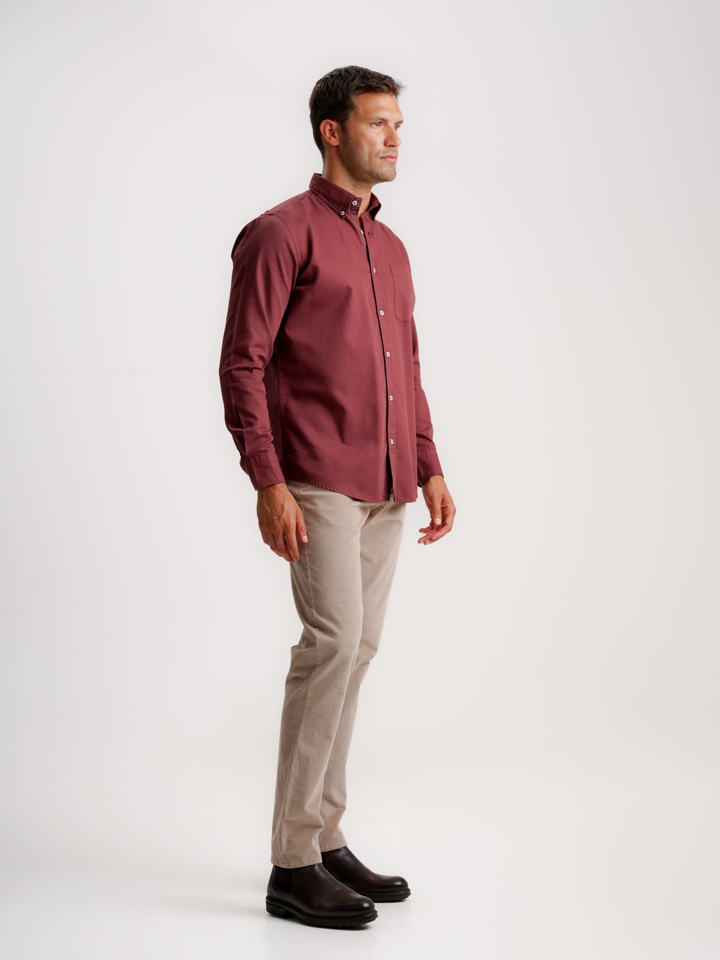 Camisa Regular Fit Estruturada Vermelha Manga Comprida Com Bolso Lisa
