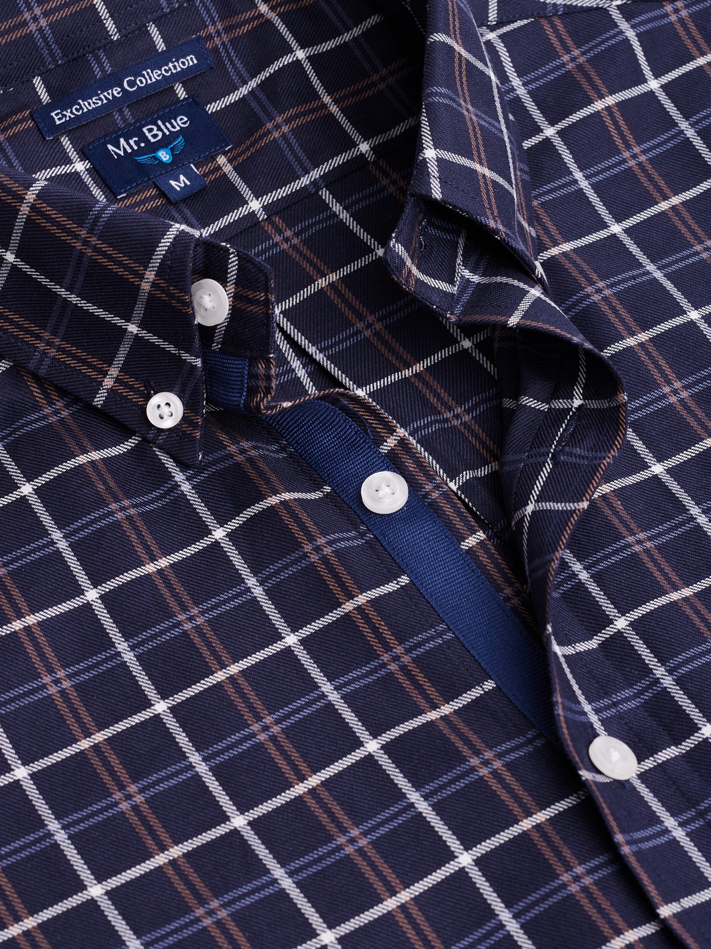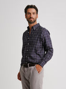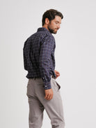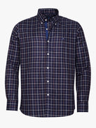 Camisa Regular Fit Twill Azul Algodão Quadrados Com logo