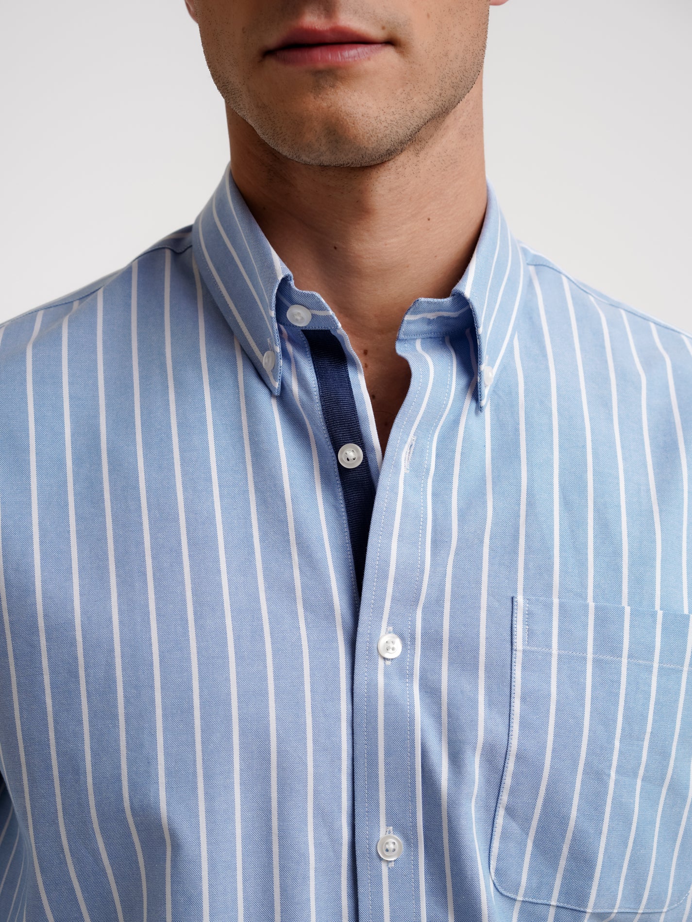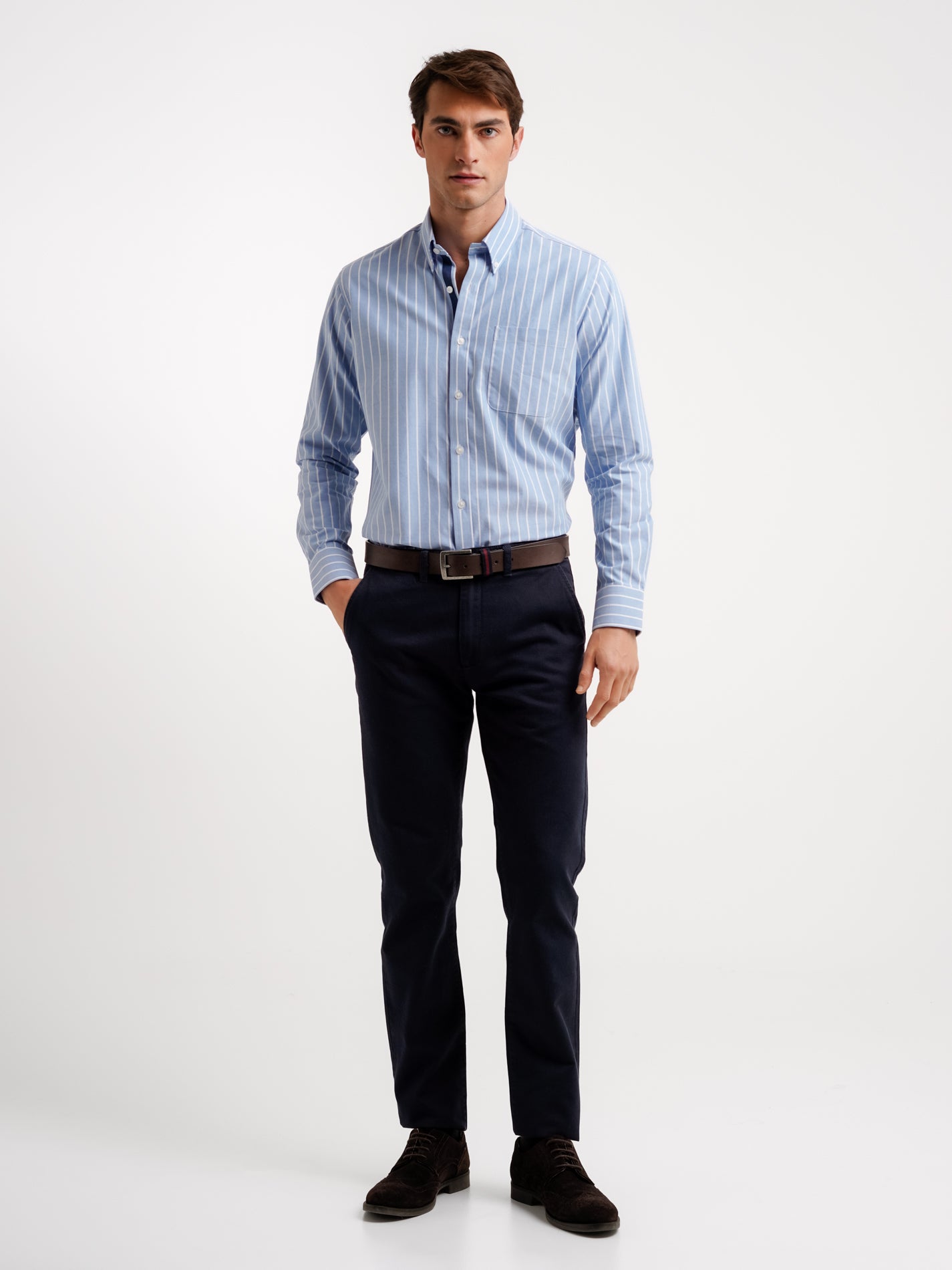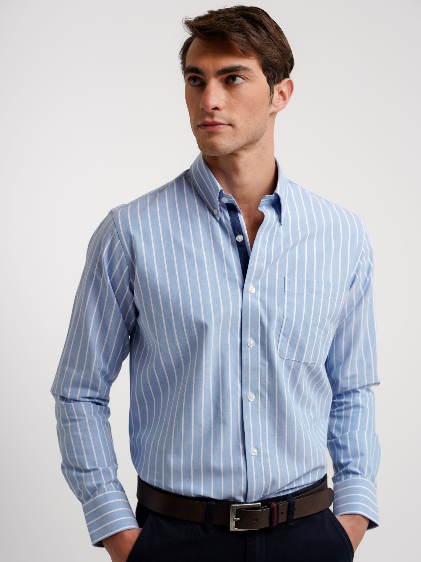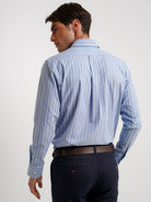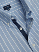 Camisa Regular Fit Oxford Azul Algodão Riscas Com bolso