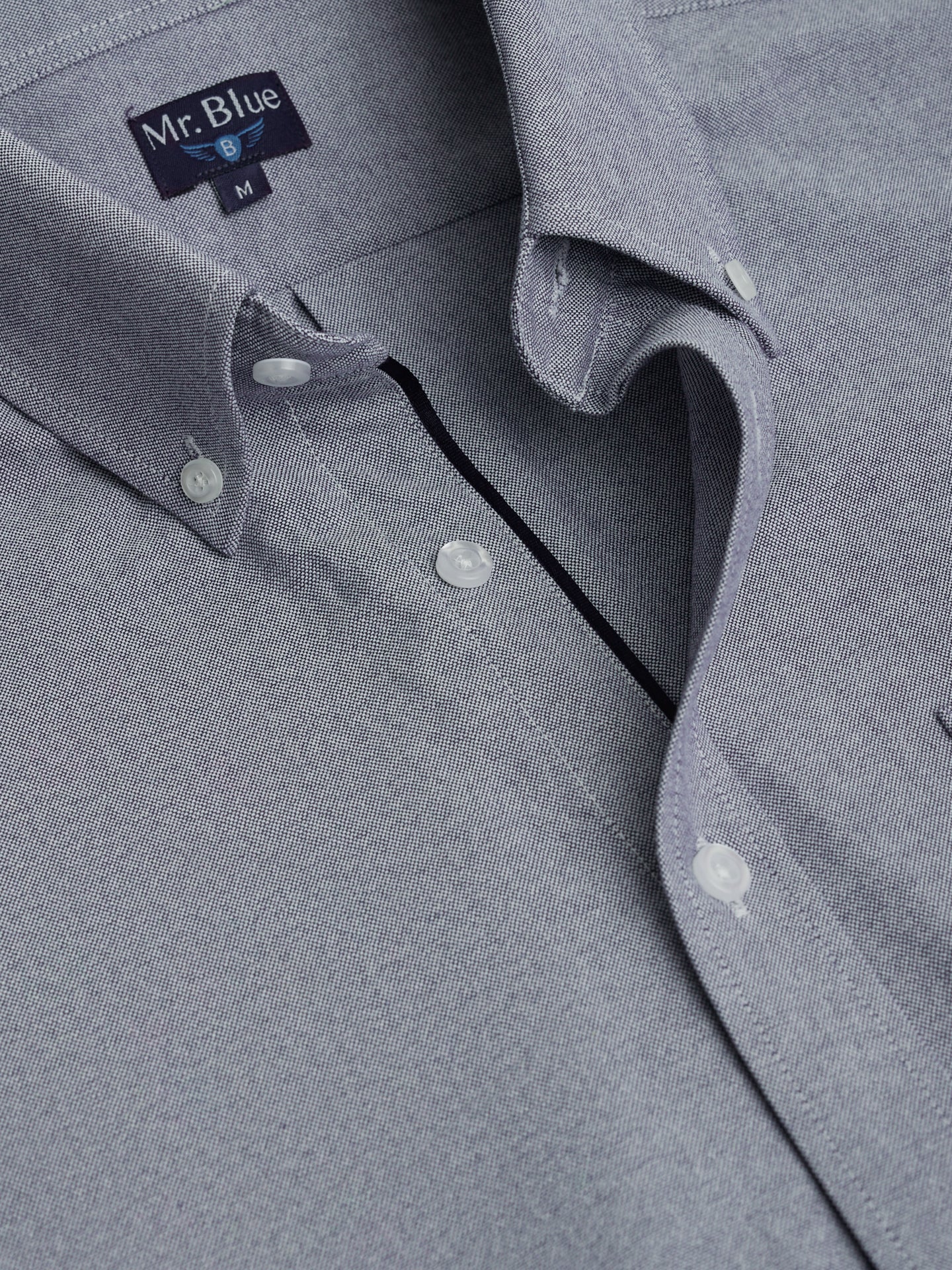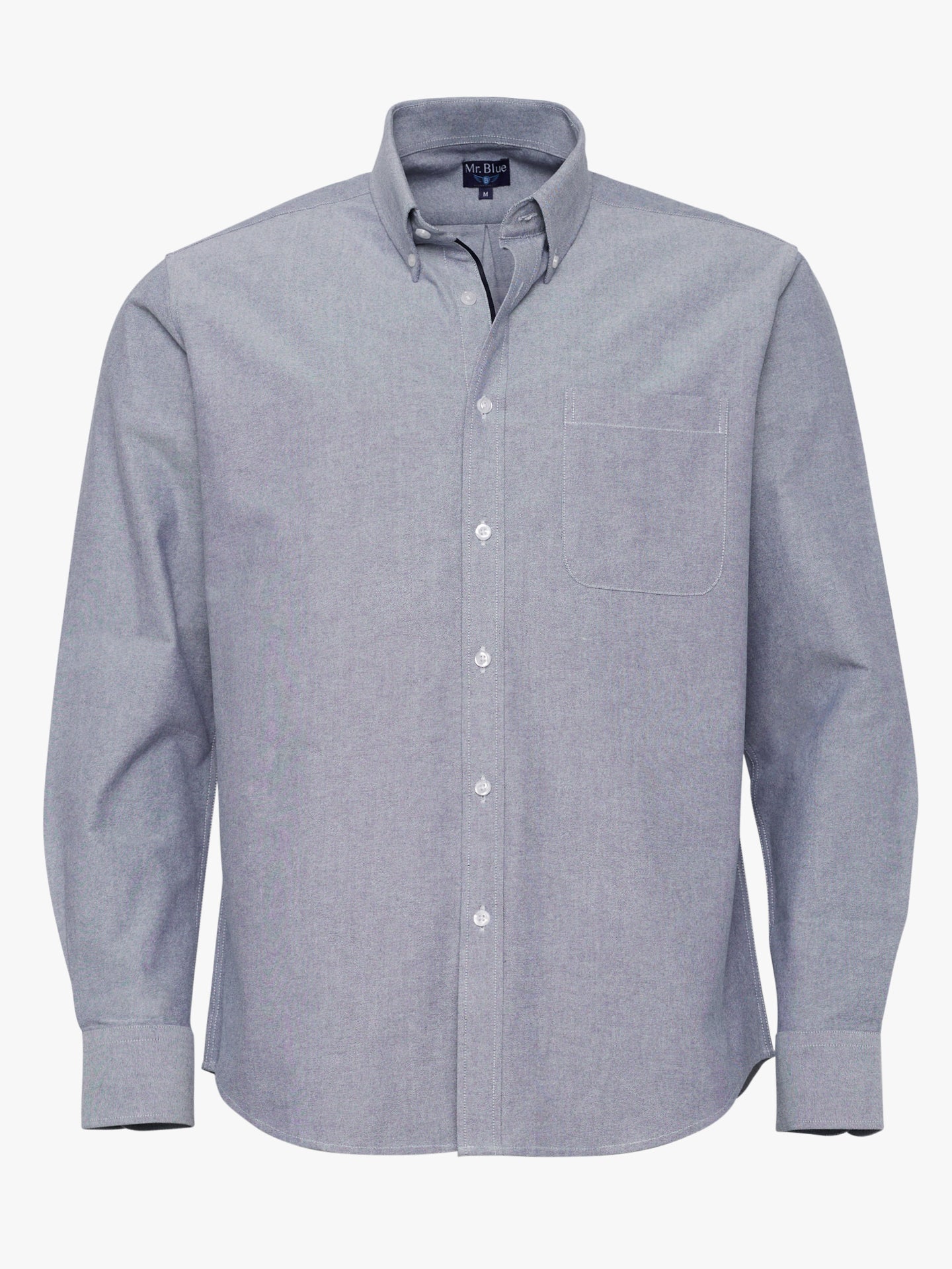 Camisa Regular Fit Oxford Azul Manga Comprida Com Bolso Lisa