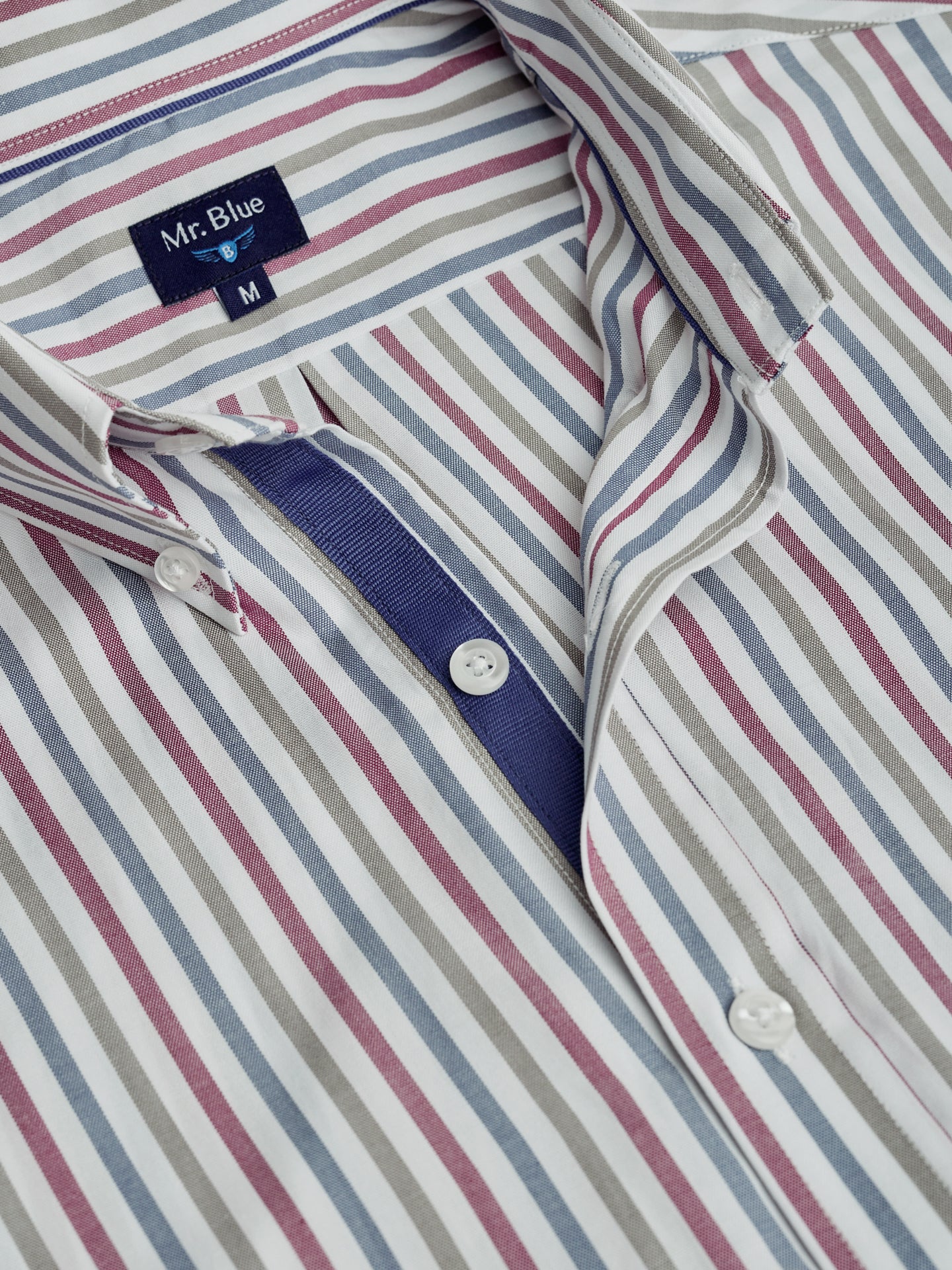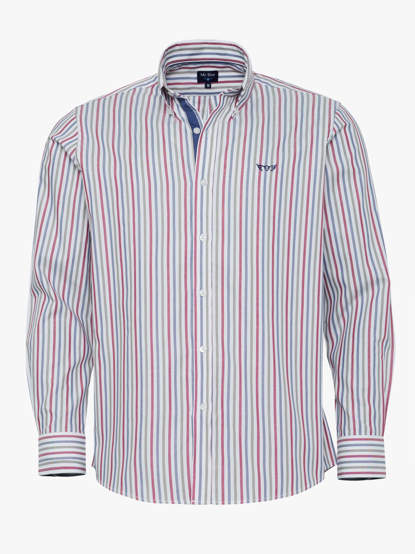 Camisa Regular Fit Oxford Azul Manga Comprida Com Logo Com Riscas