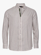 Camisa Regular Fit Twill Bege Algodão Riscas Com bolso