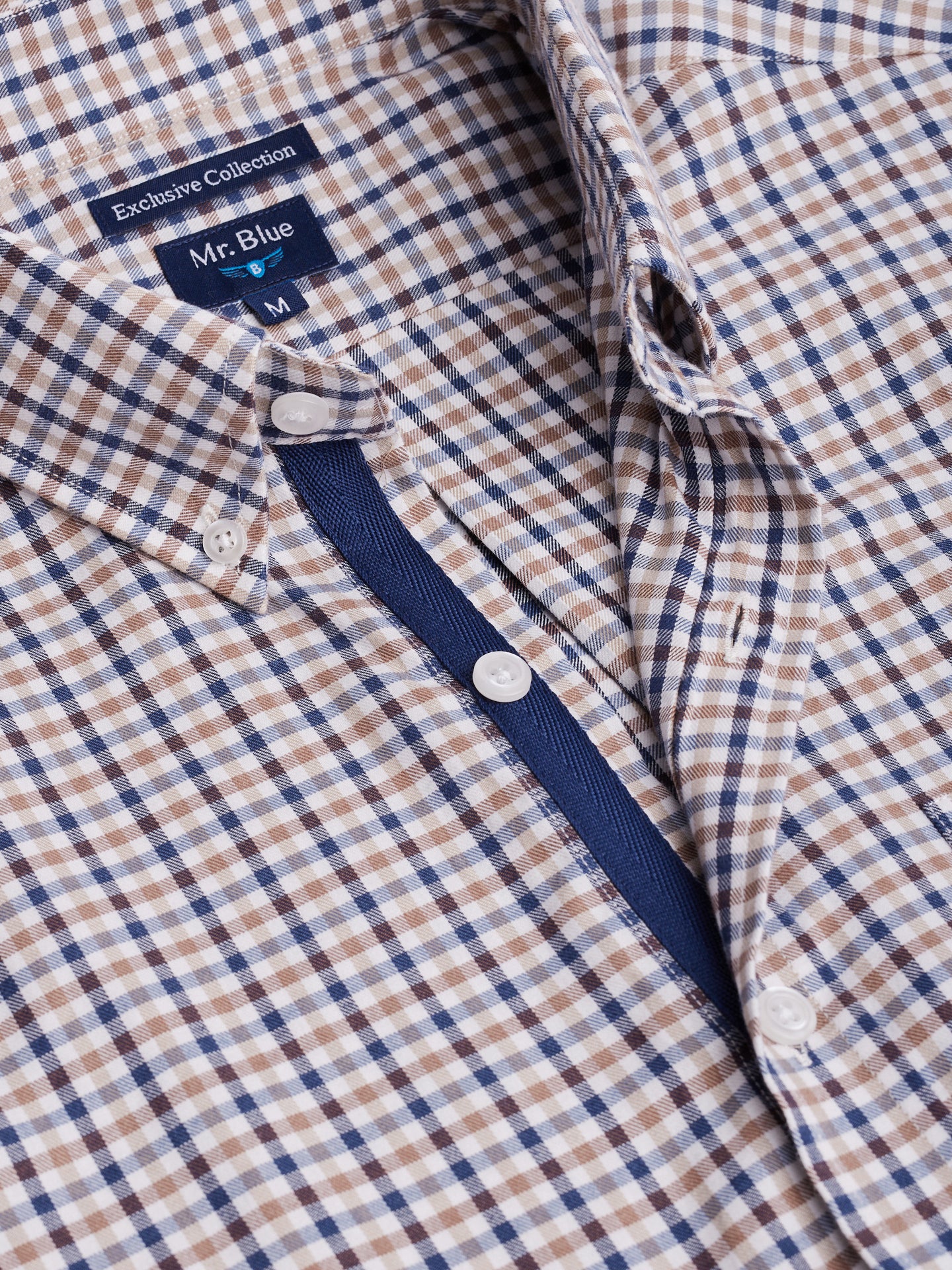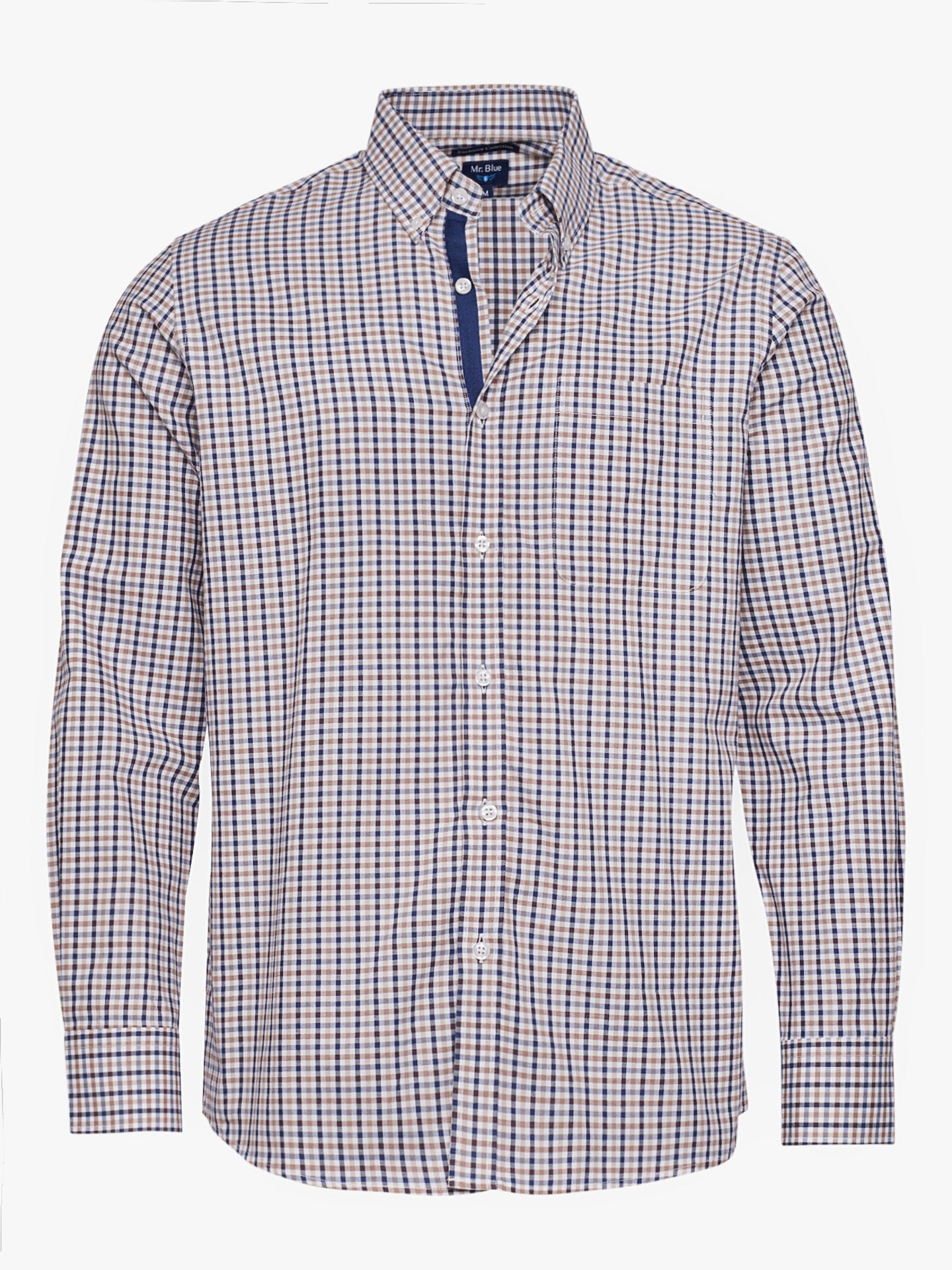 Camisa Regular Fit Vaiela Bege Algodão Quadrados Com bolso