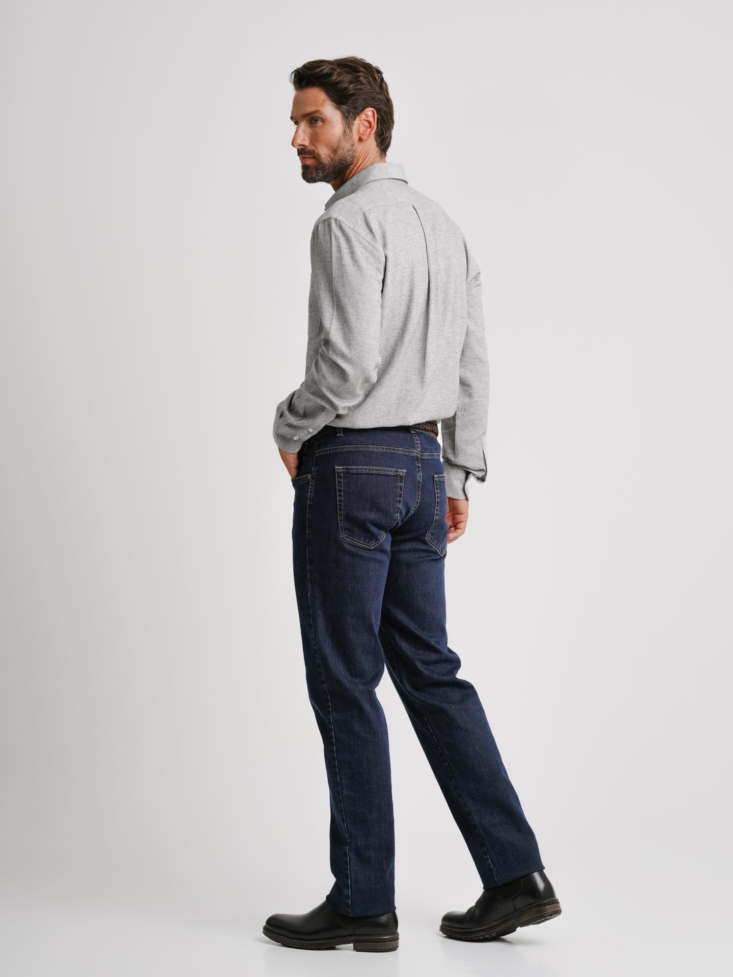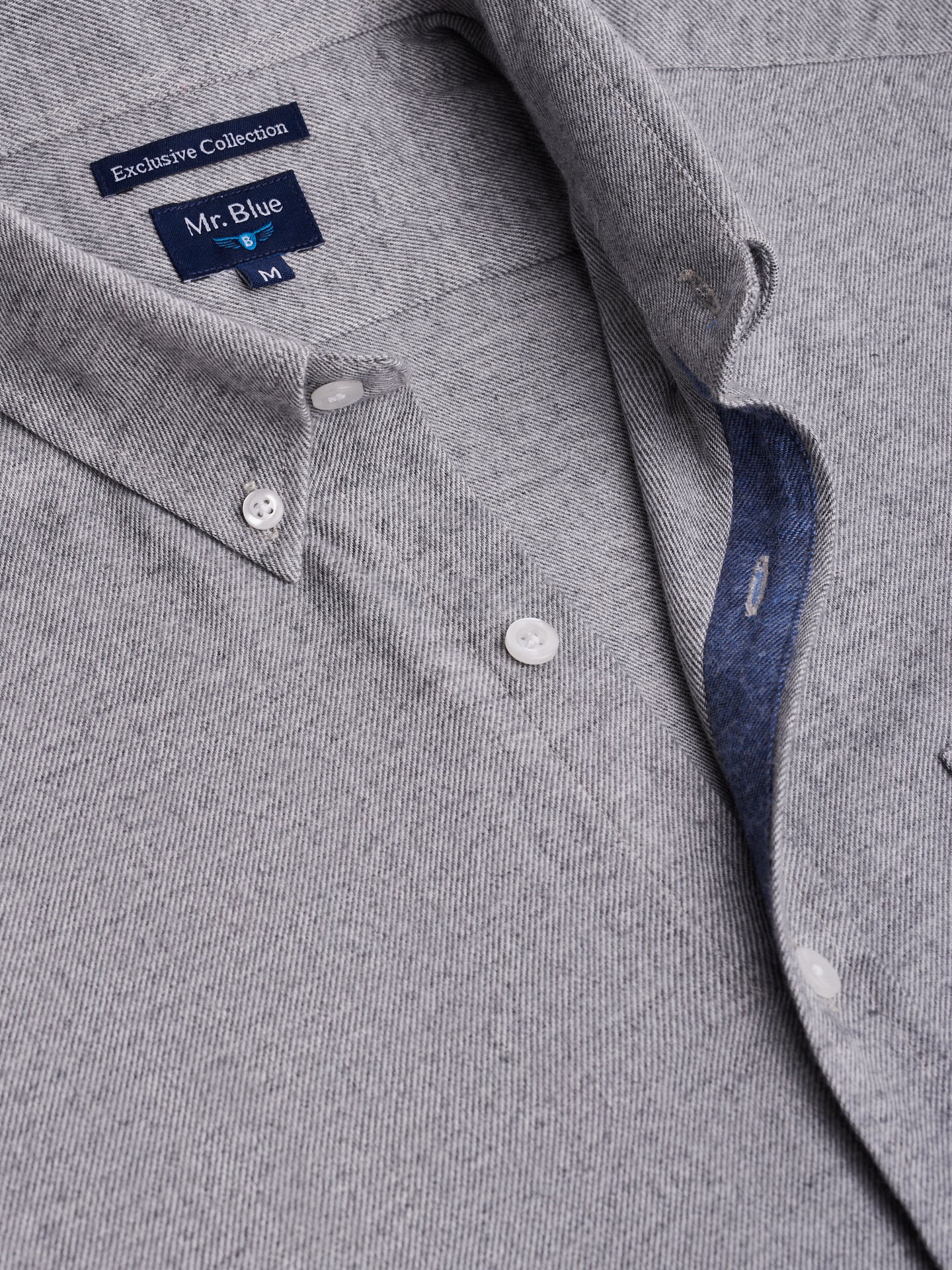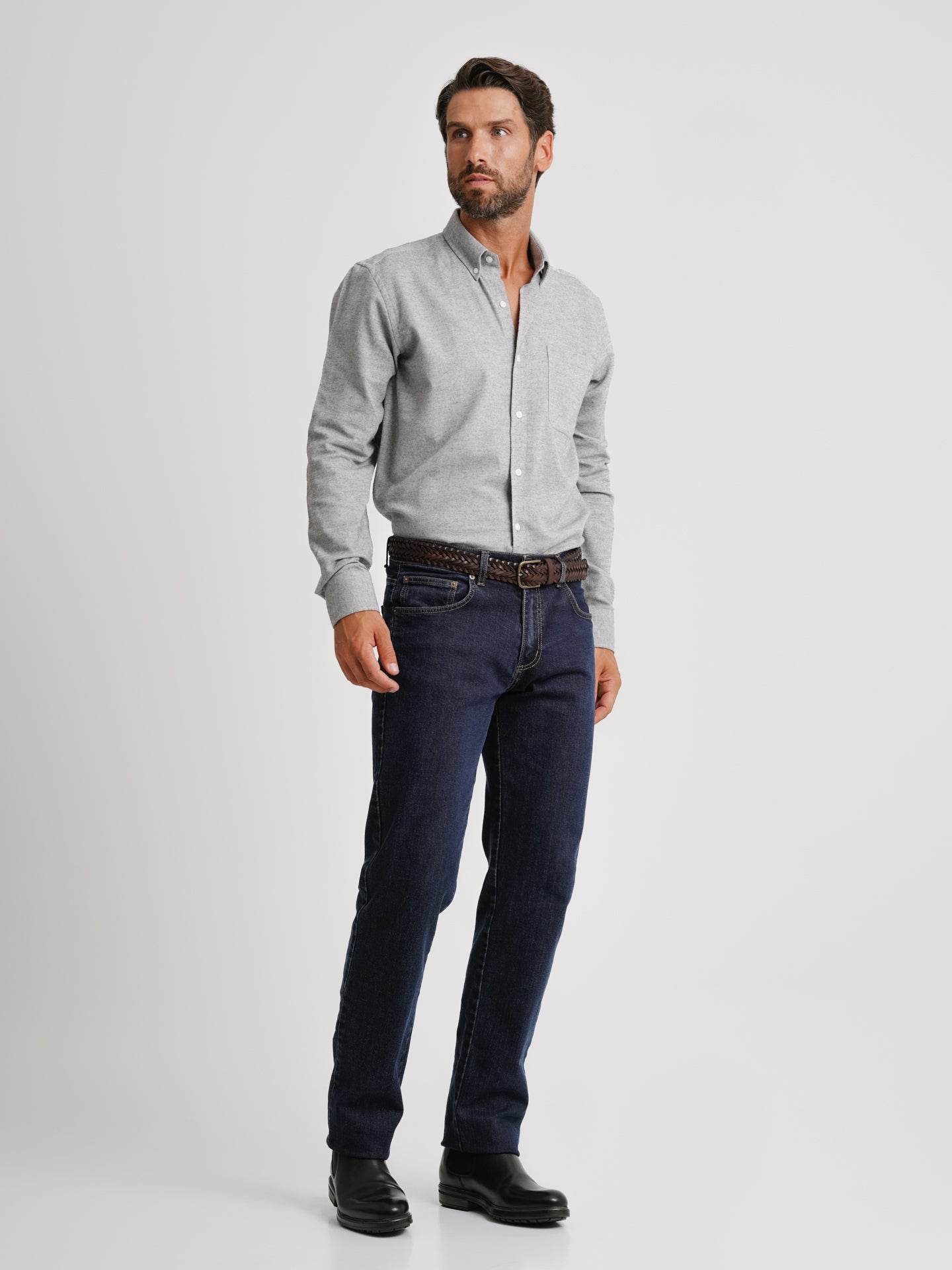 Camisa Regular Fit Flanela Cinzenta Algodão Liso