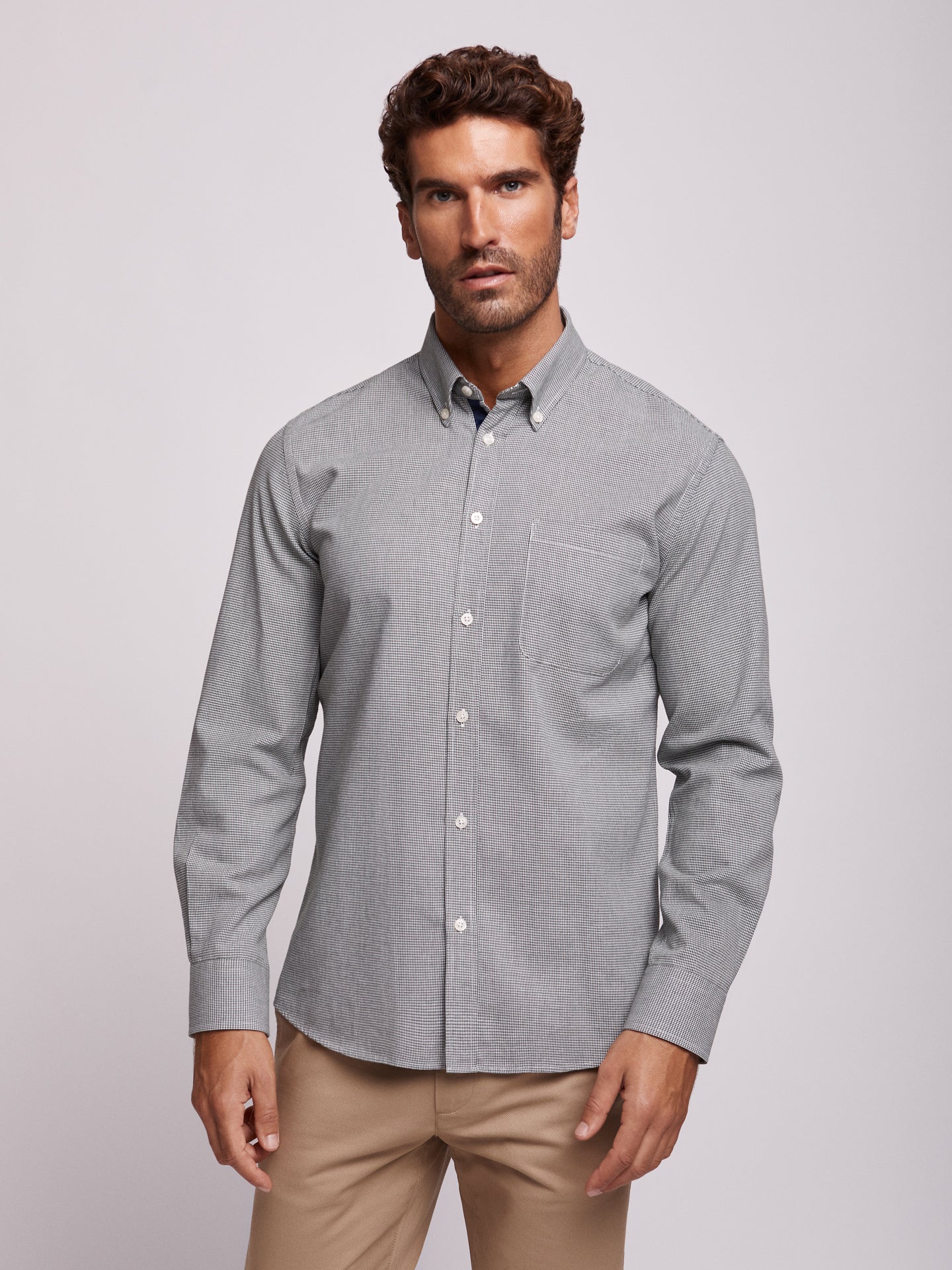 Camisa Regular Fit Verde Manga CompridaManga Comprida Quadrados