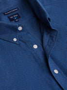 Camisa Regular Fit Twill Azul Algodão Liso Com logo