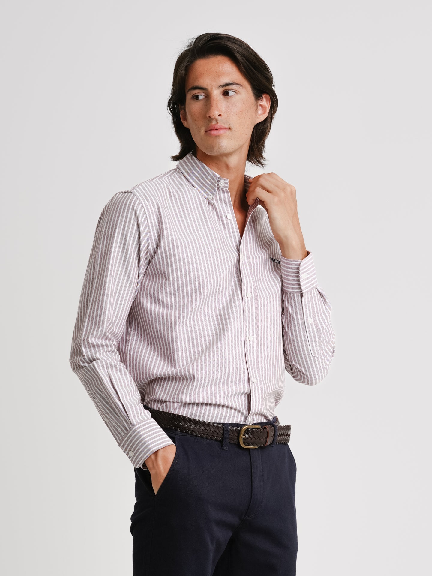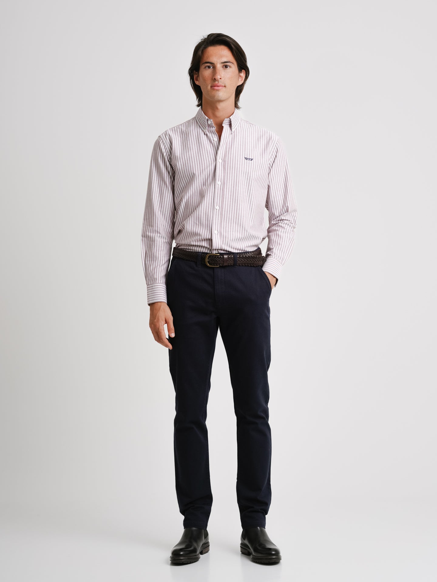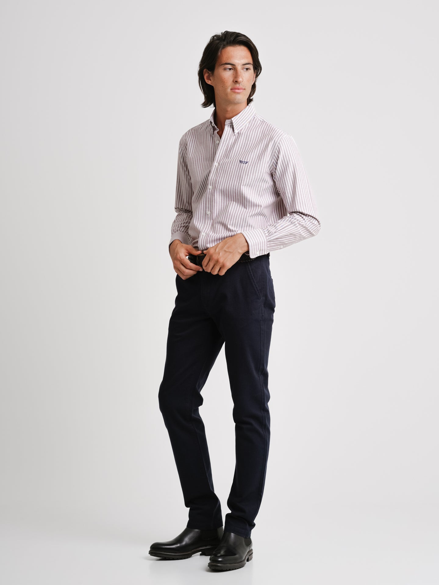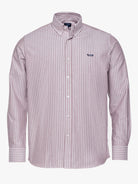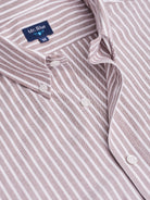 Camisa Regular Fit Oxford Castanha Algodão Riscas Com logo
