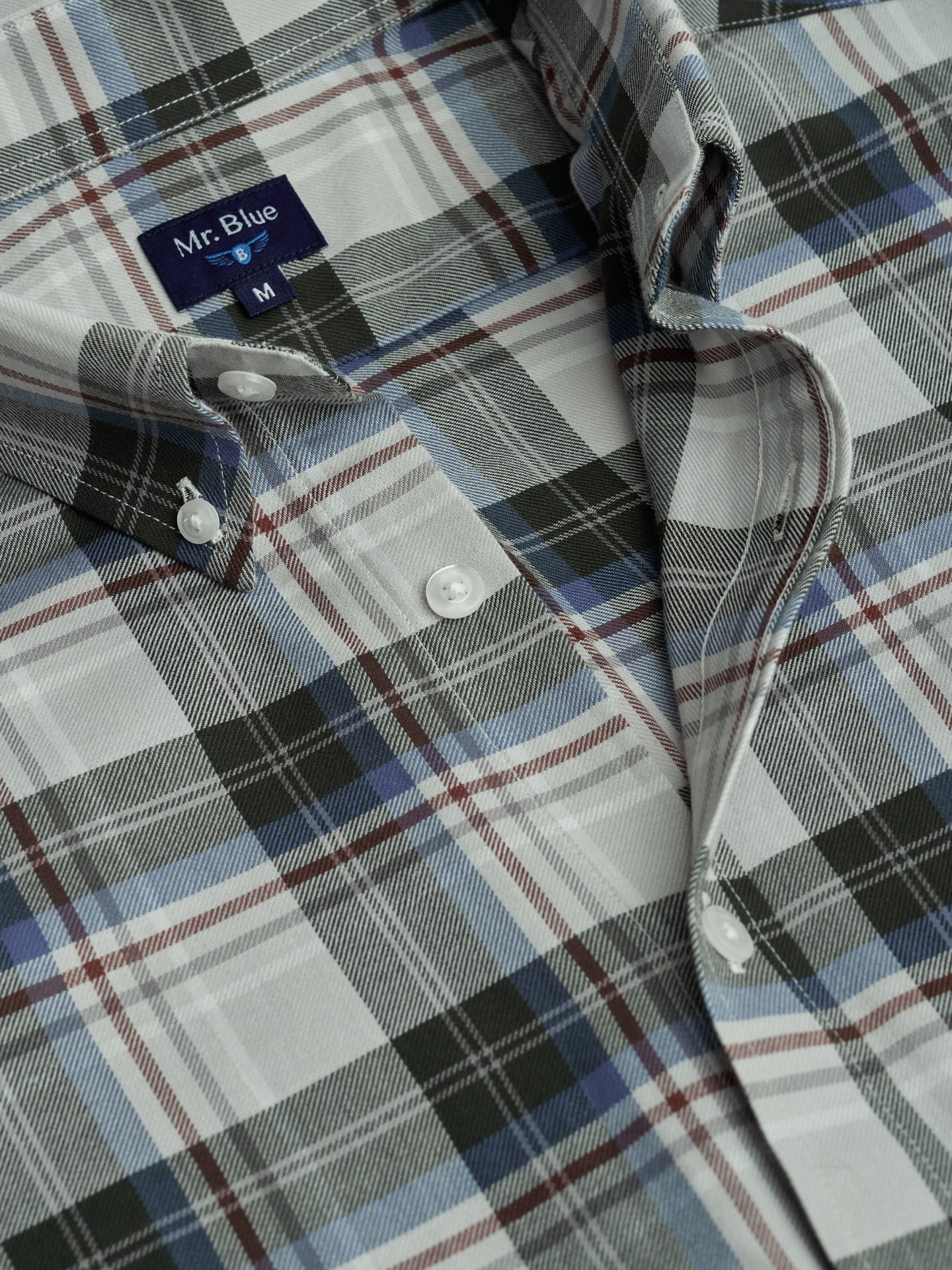 Camisa Regular Fit Flanela Cinzenta Manga Comprida Com Logo Com Quadrados