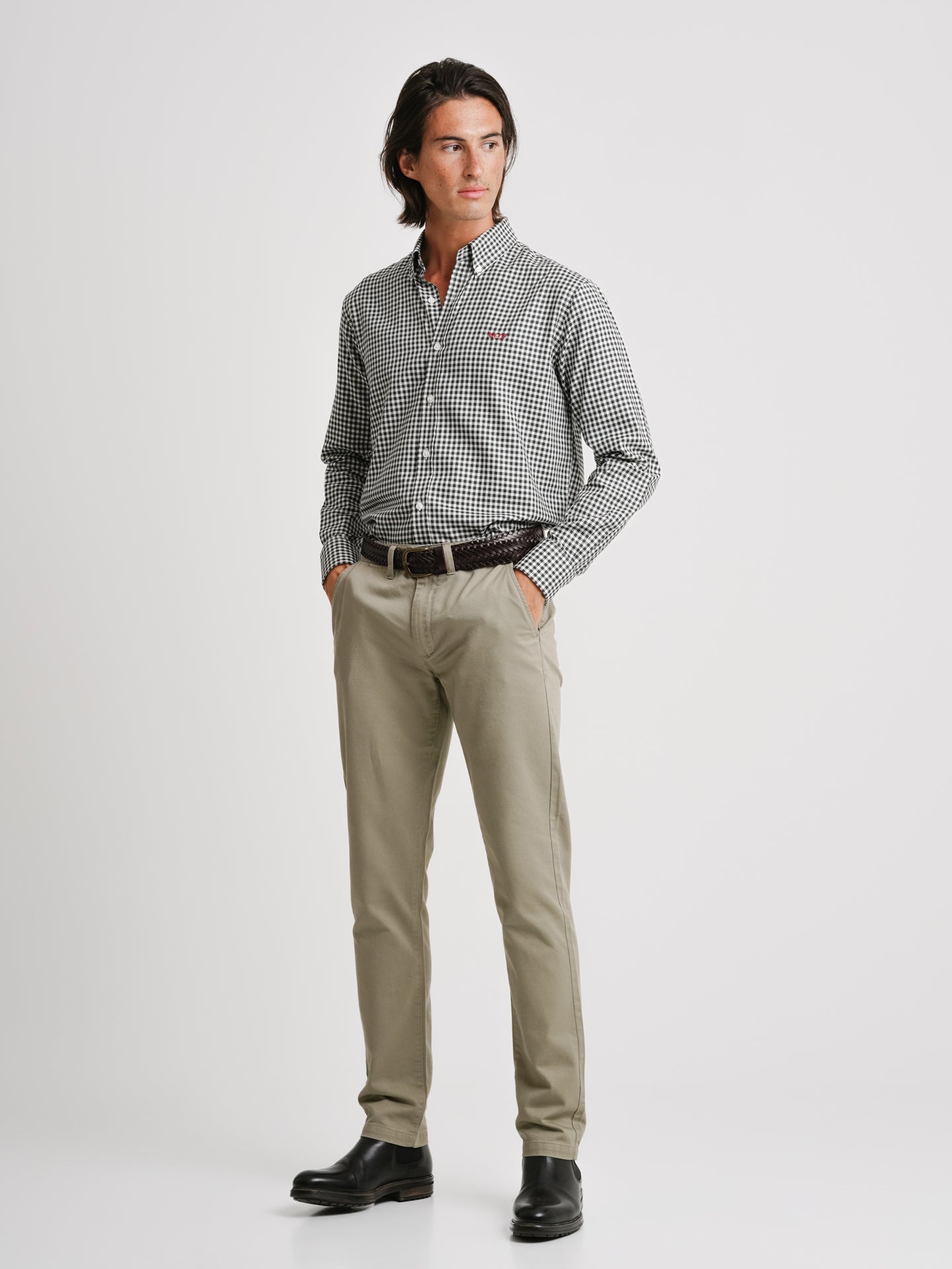 Camisa Regular Fit Twill Verde Algodão Quadrados Com logo