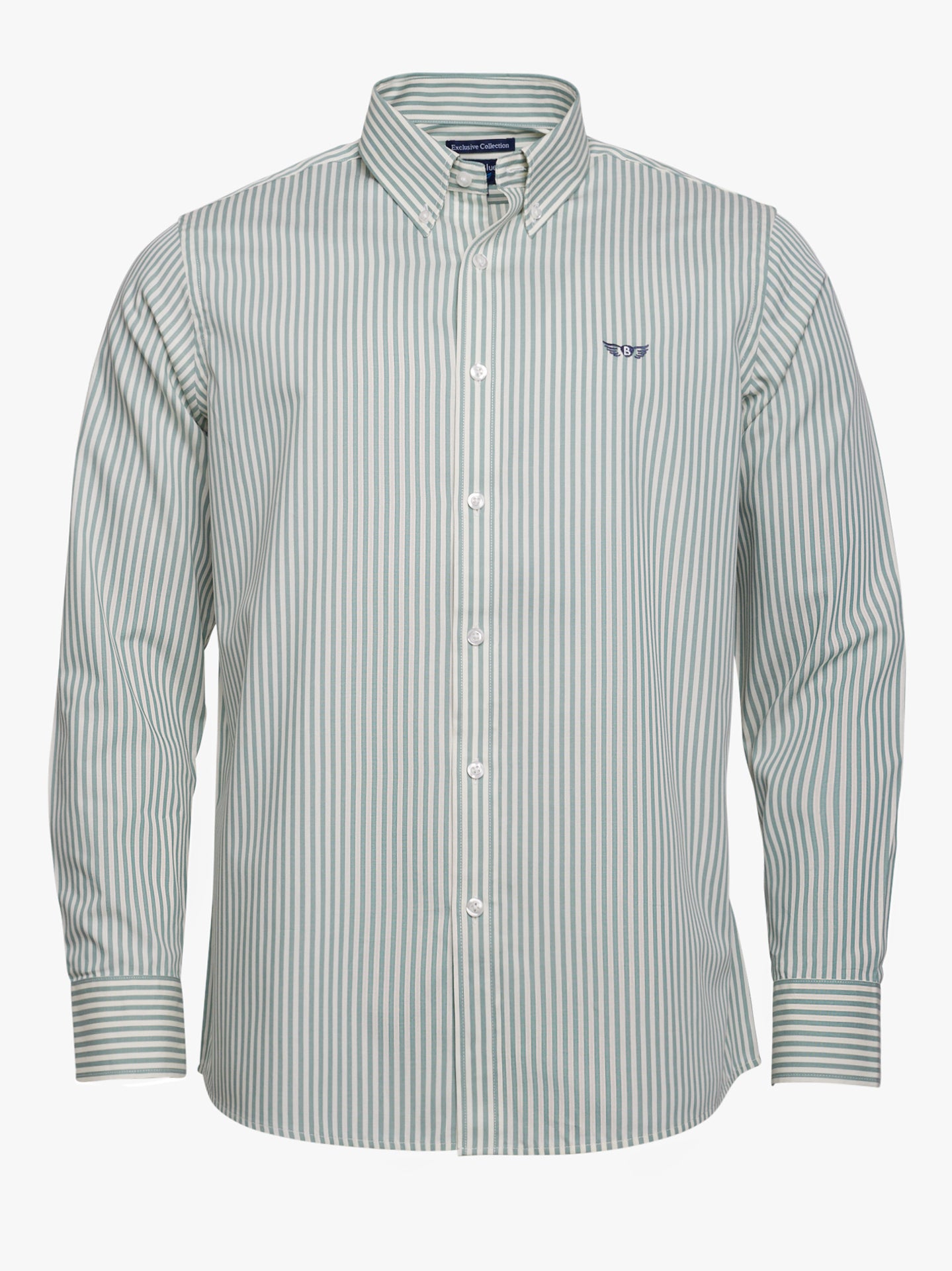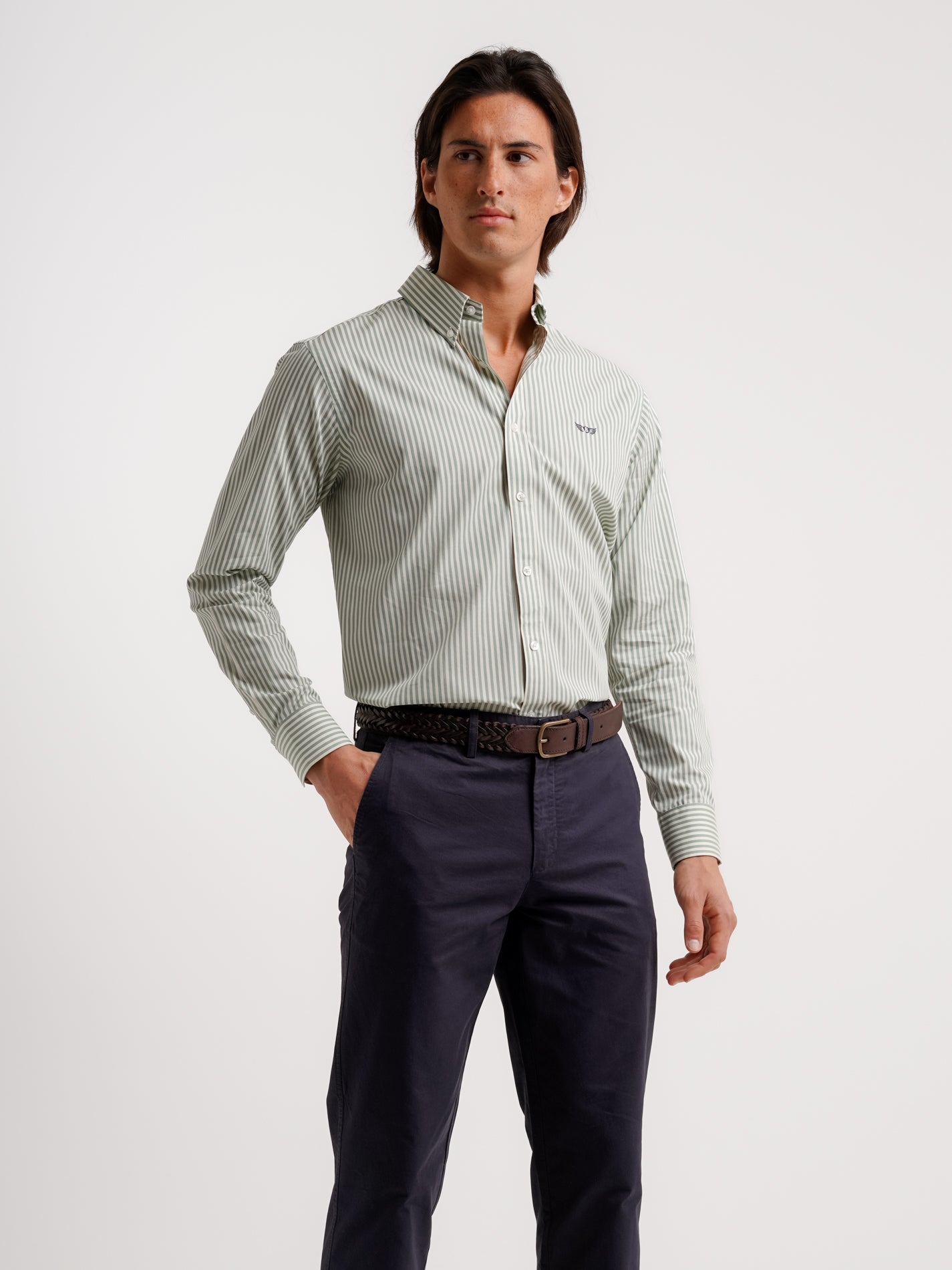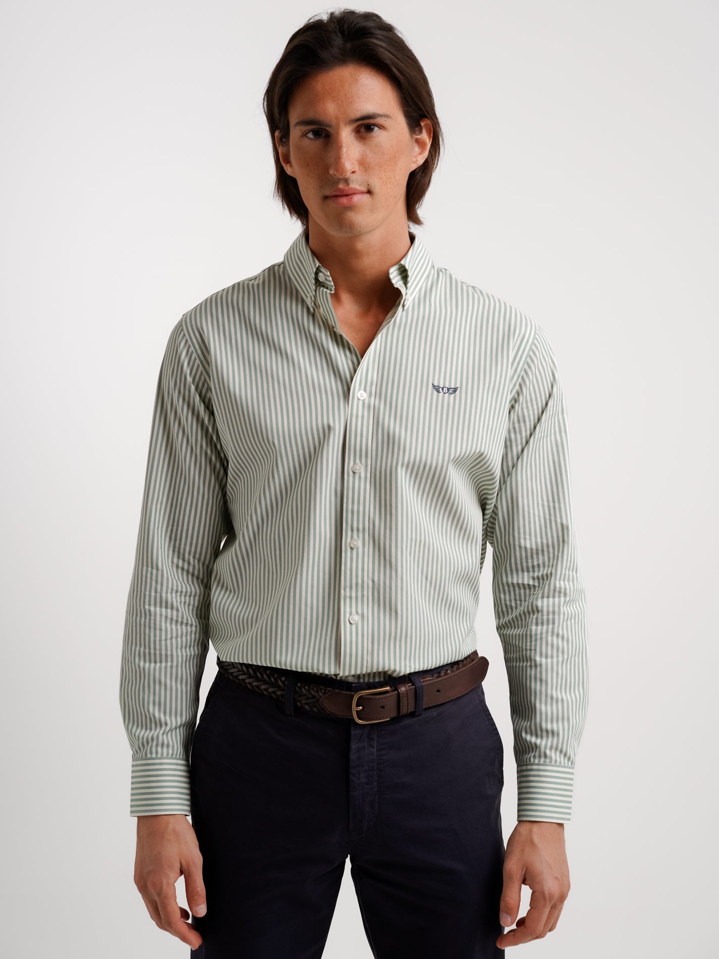 Camisa Regular Fit Twill Verde Algodão Riscas Com logo
