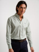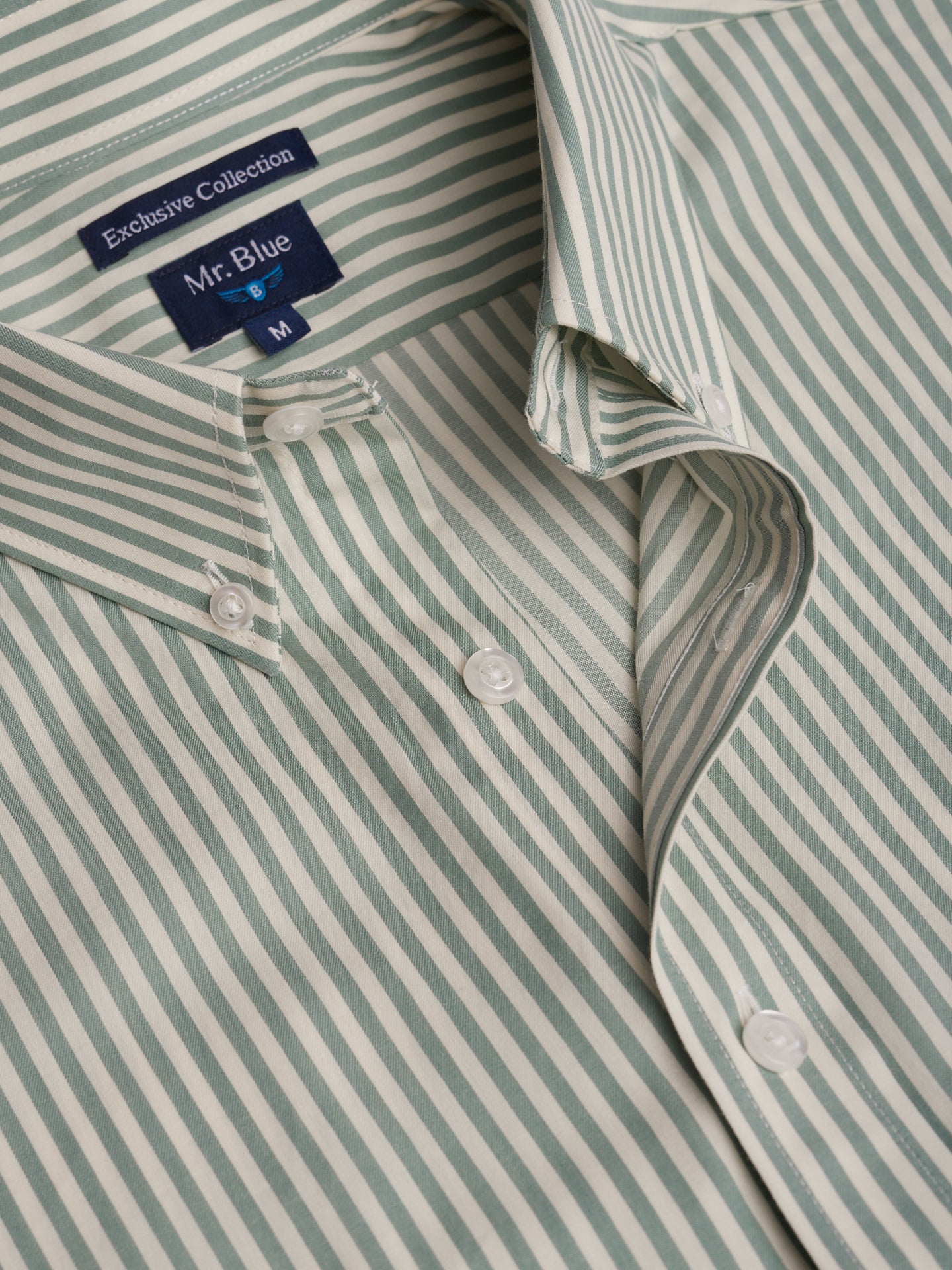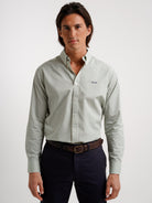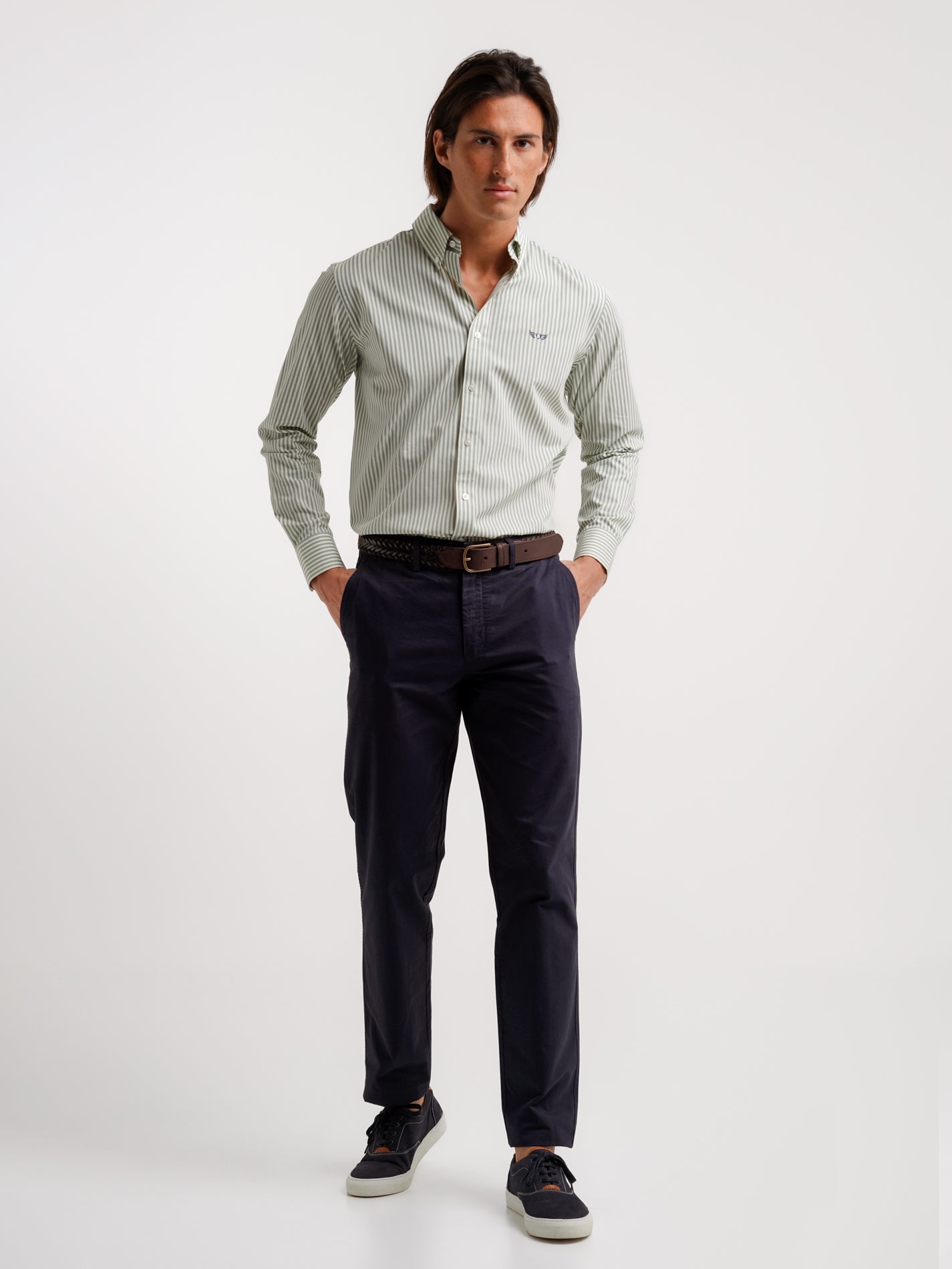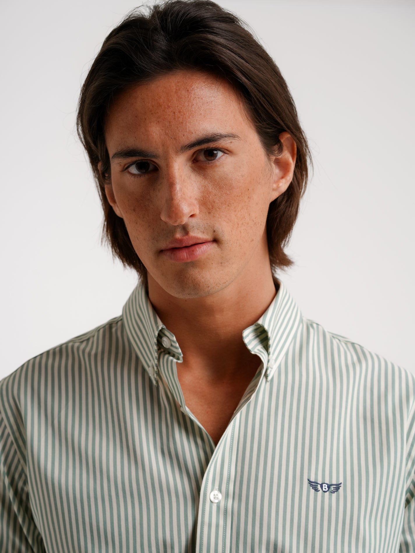 Camisa Regular Fit Twill Verde Algodão Riscas Com logo