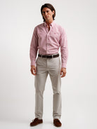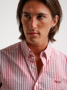 Camisa Regular Fit Seersucker Vermelha Algodão Riscas Com logo