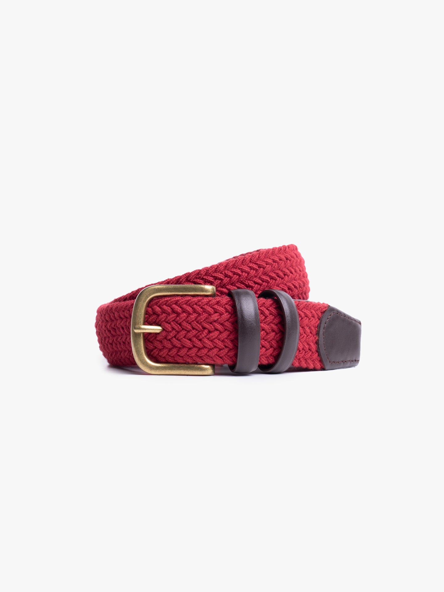 Cinto Elástico Entrançado vermelho com fivela dourada para homem
