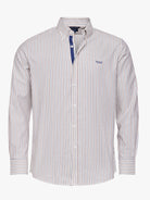 Camisa Regular Fit Vaiela Bege Algodão Riscas Com logo