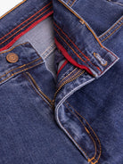 Calças de ganga com cintura subida, fecho de correr oculto por carcela e botão a contrastar, design de cinco bolsos e presilhas para o cinto. Fabricada com fibras naturais de alta qualidade, é a escolha de eleição para o fim-de-semana ou para um look mais
