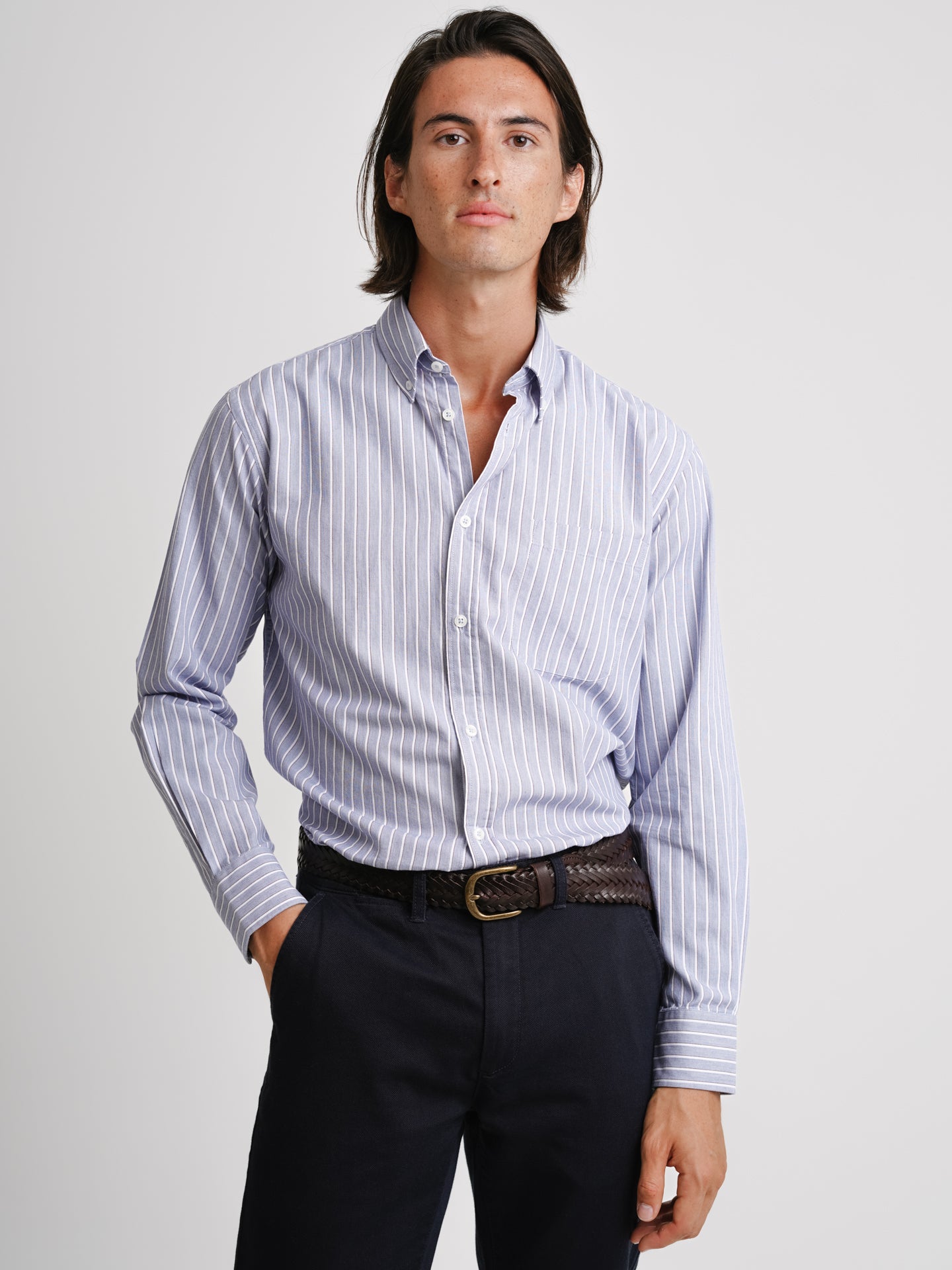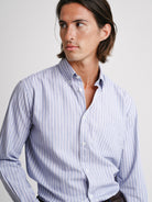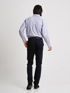 Camisa Regular Fit Twill Azul Algodão Riscas Com bolso