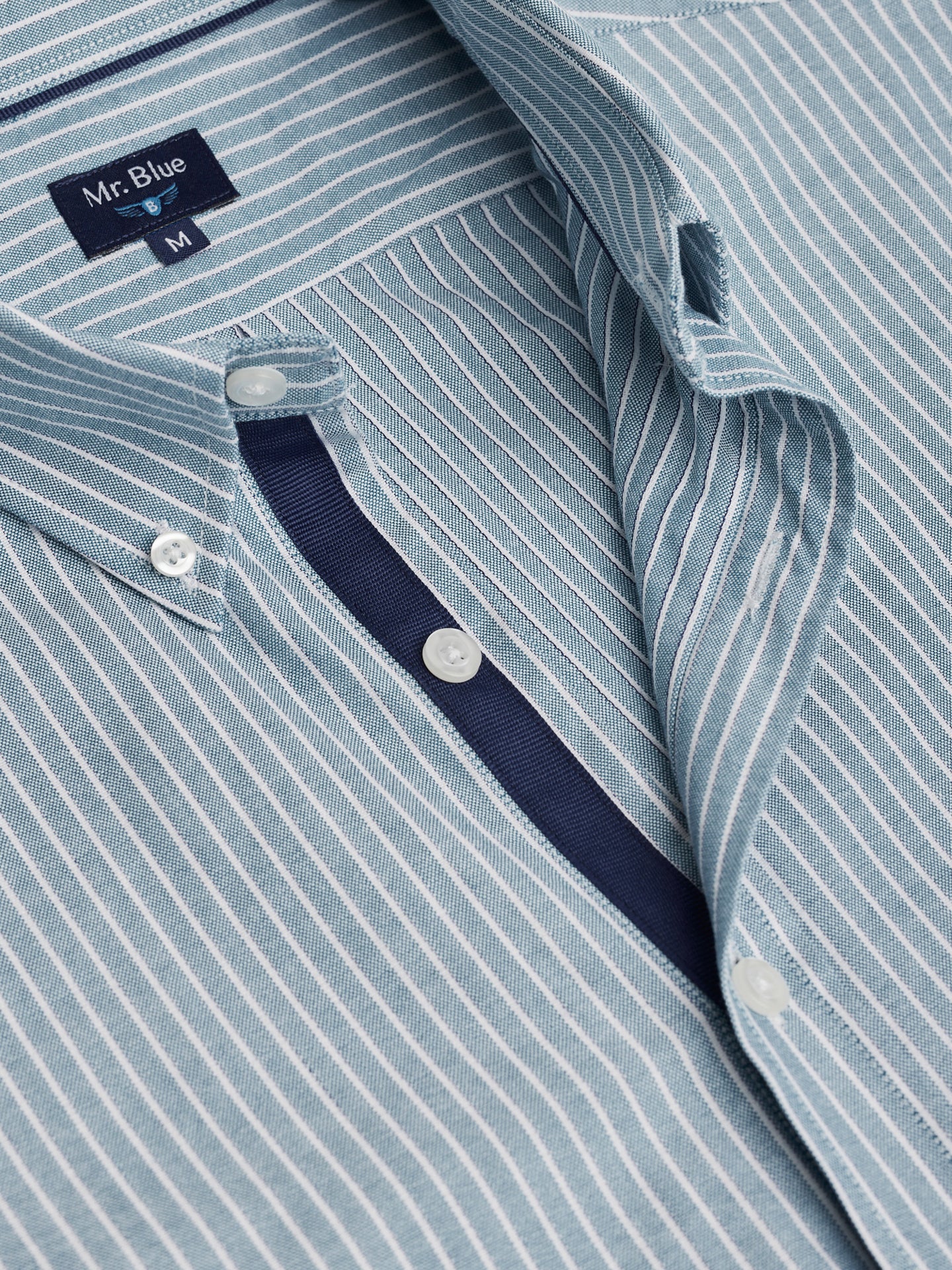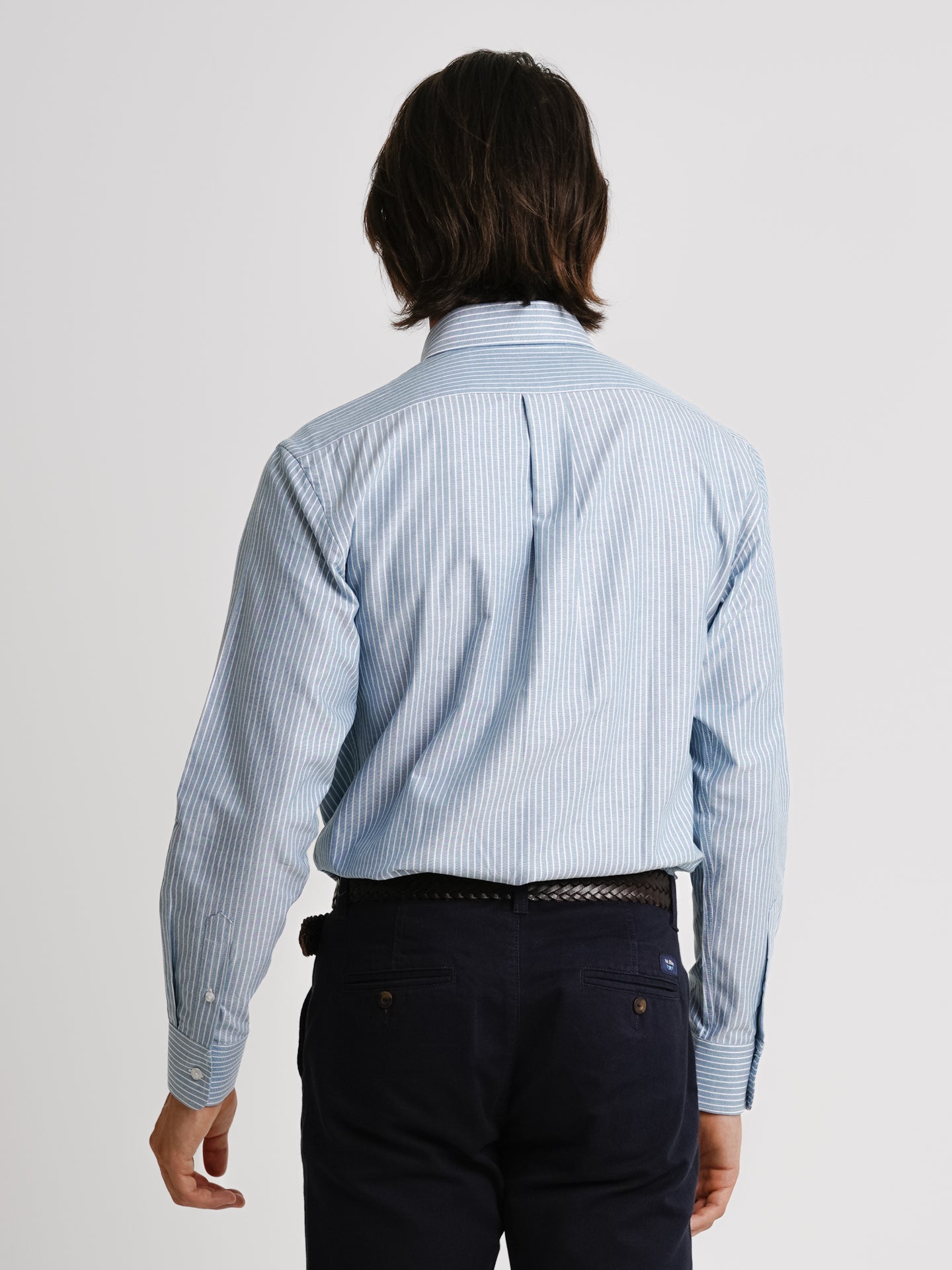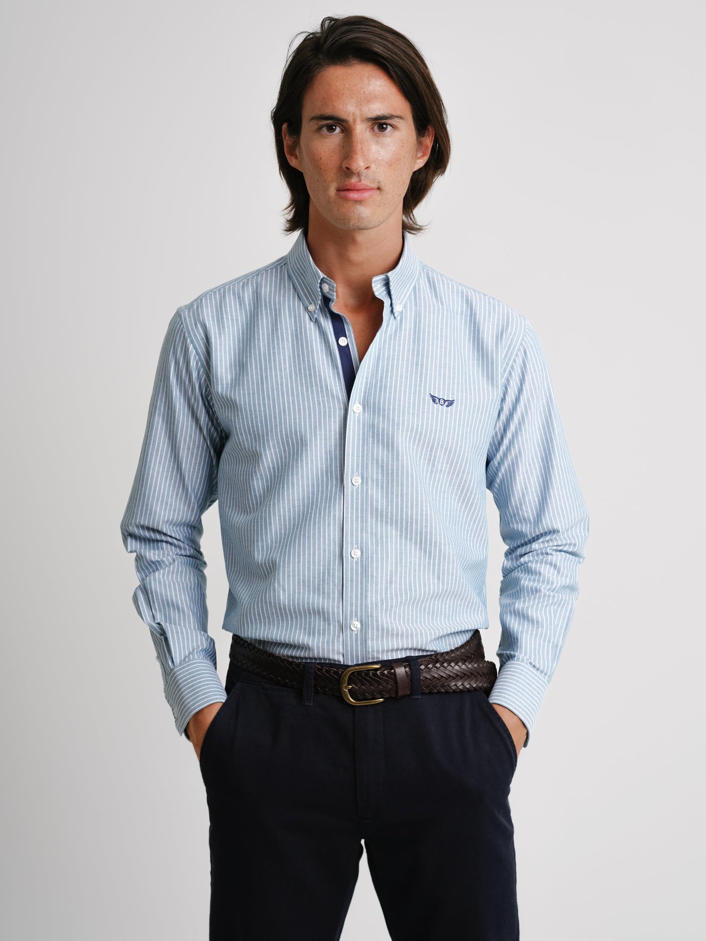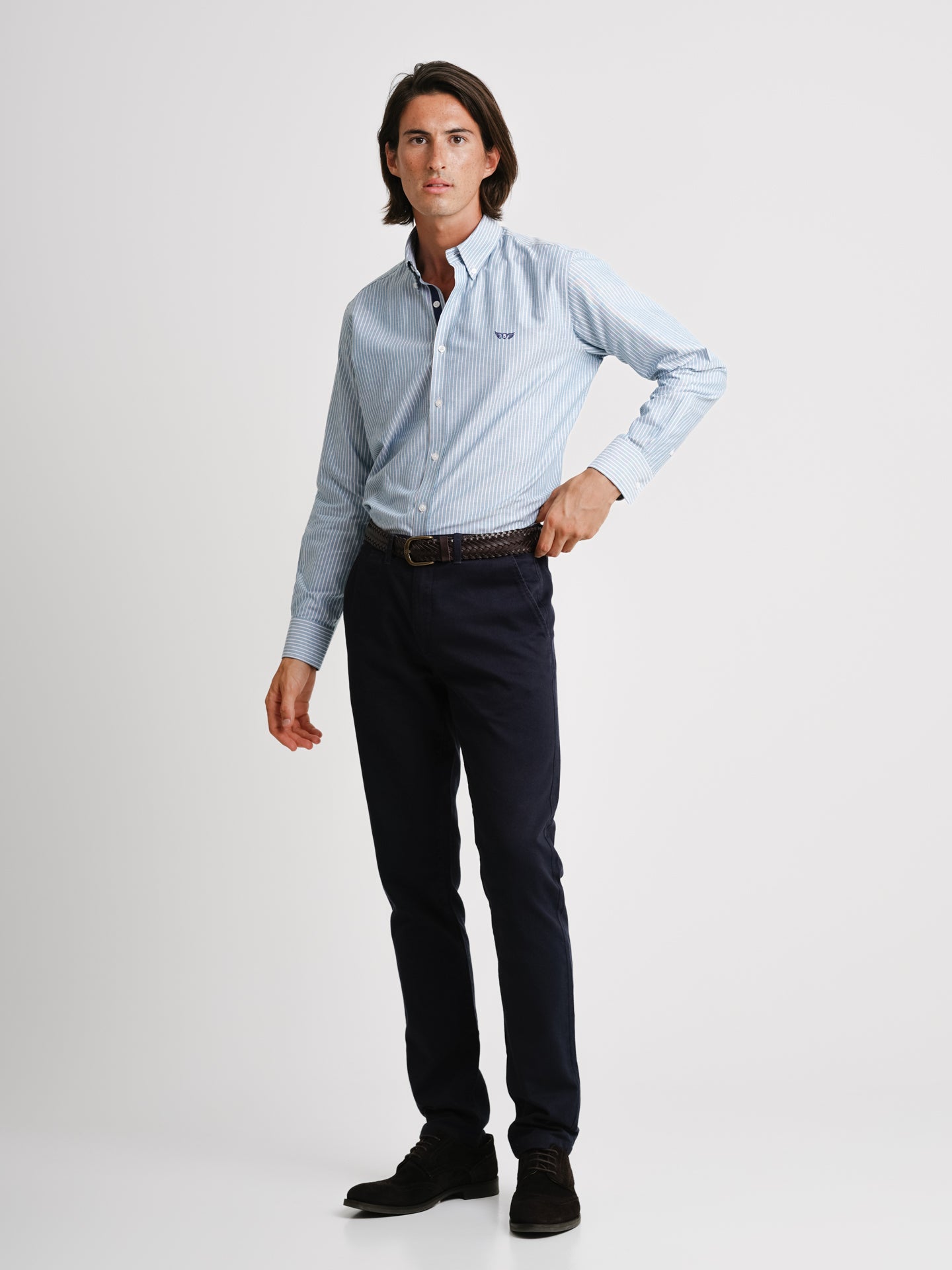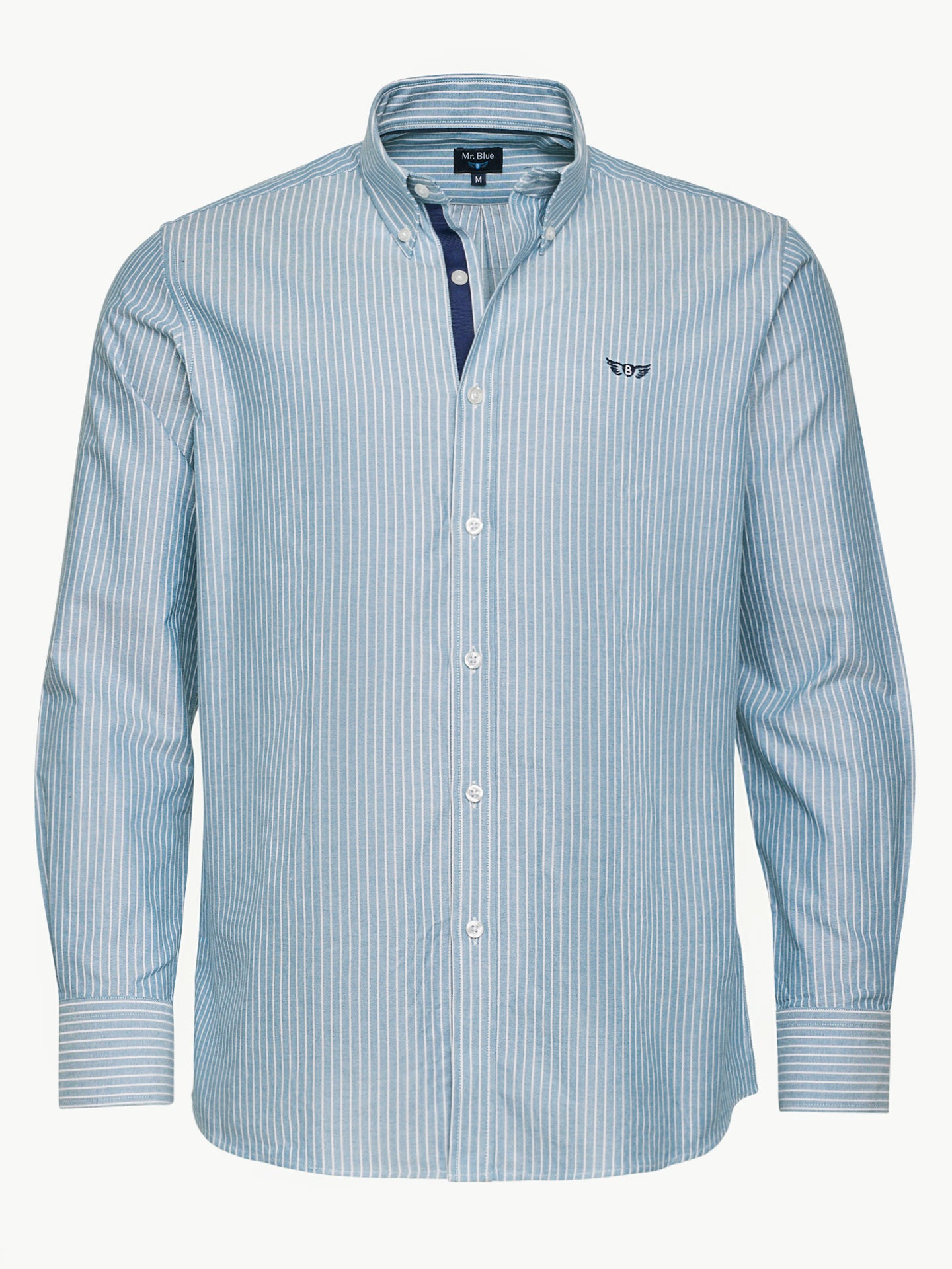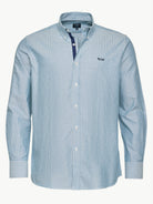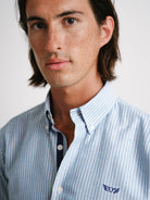 Camisa Regular Fit Oxford Azul Algodão Riscas Com logo