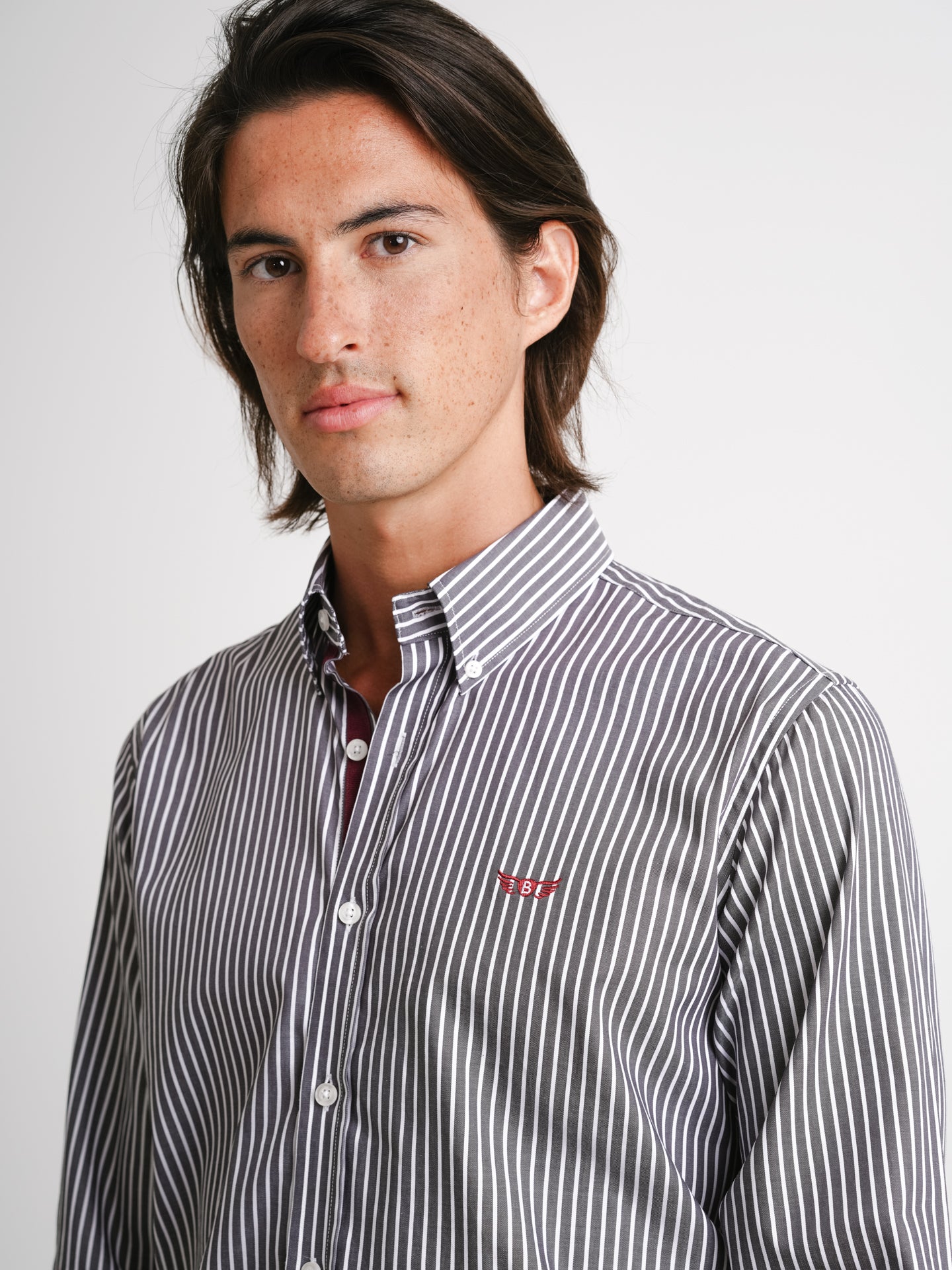 Camisa Regular Fit Twill Cinzenta Algodão Riscas Com logo