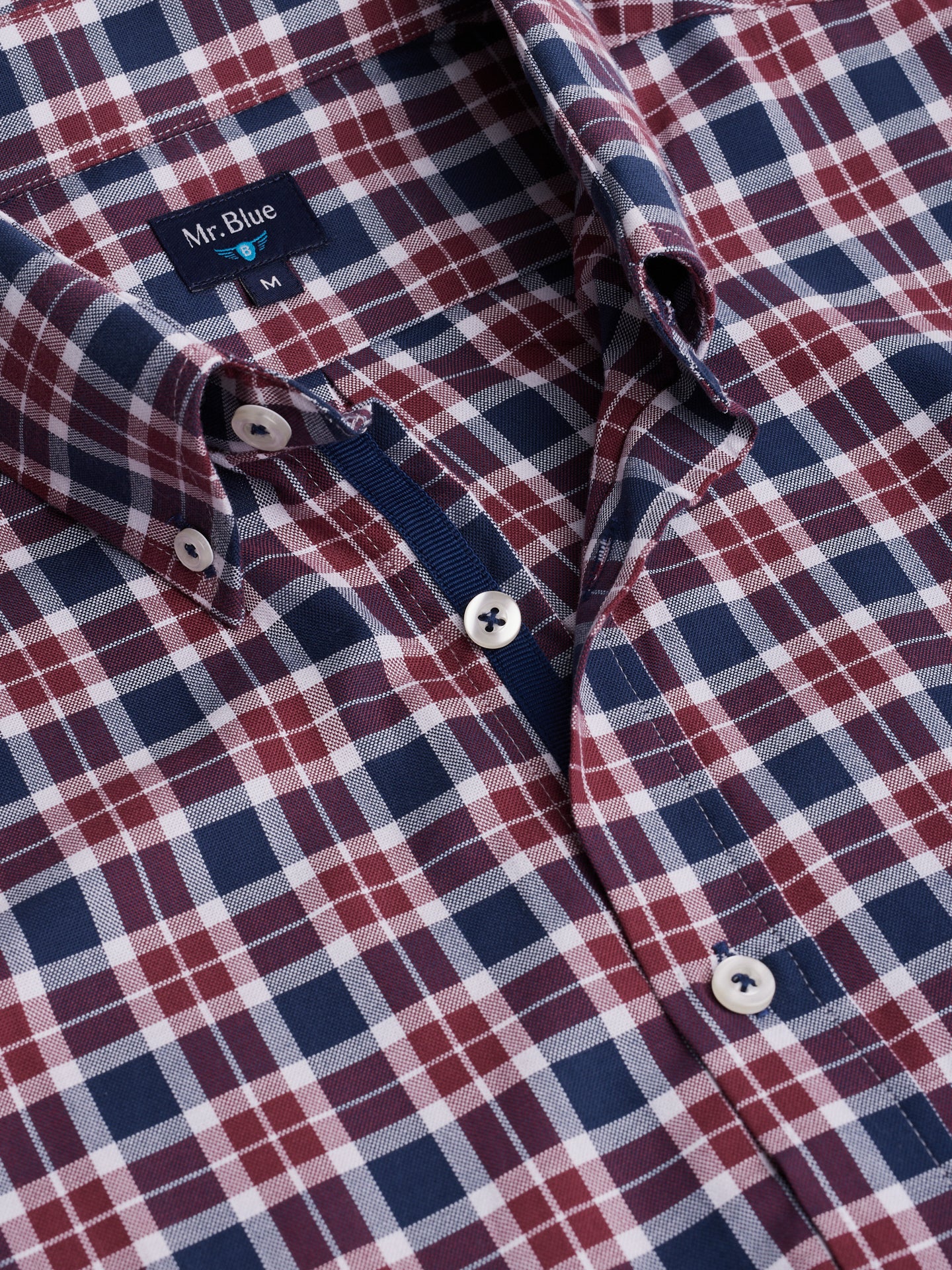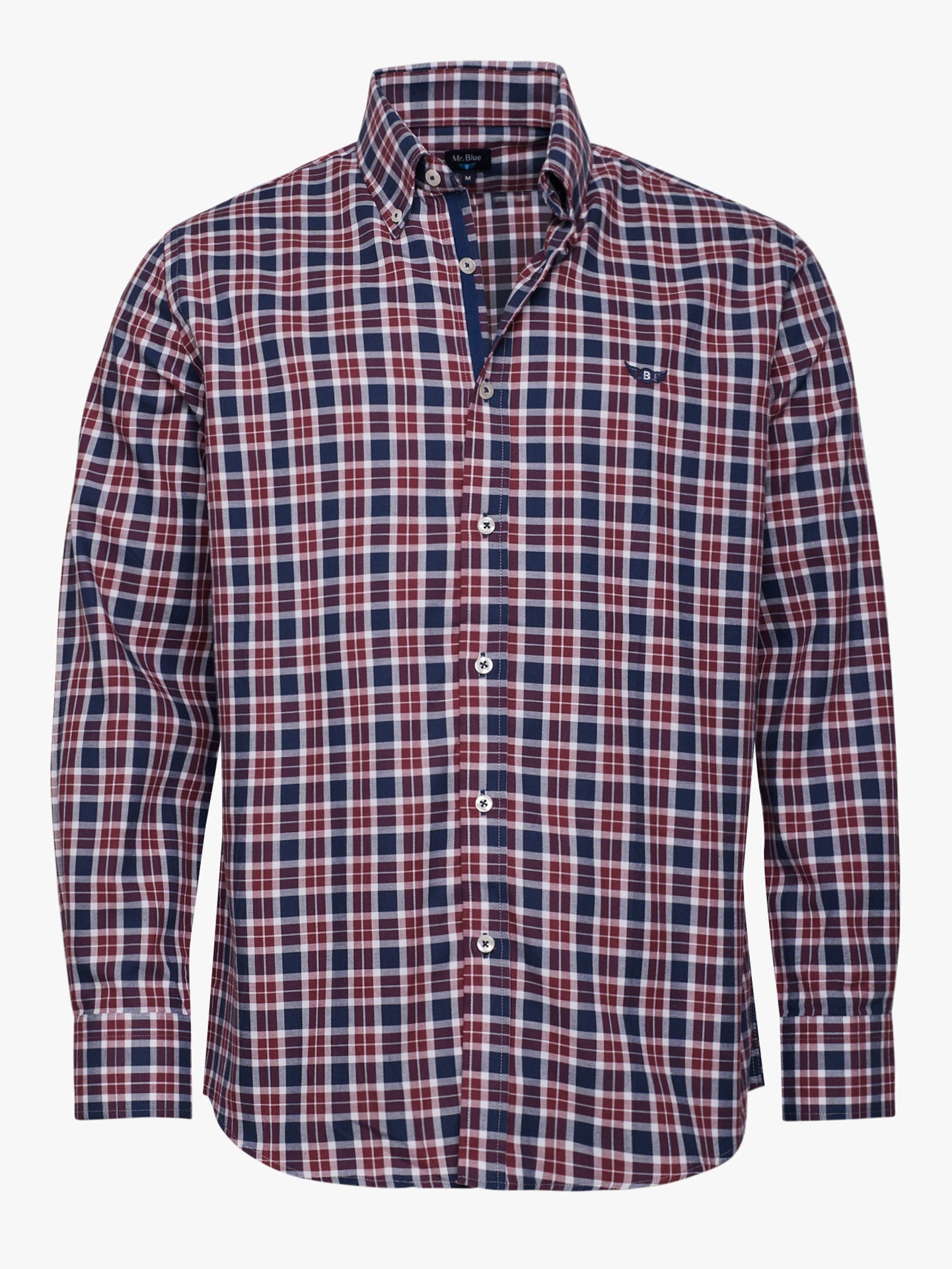 Camisa Regular Fit Oxford Vermelha Algodão Quadrados Com logo