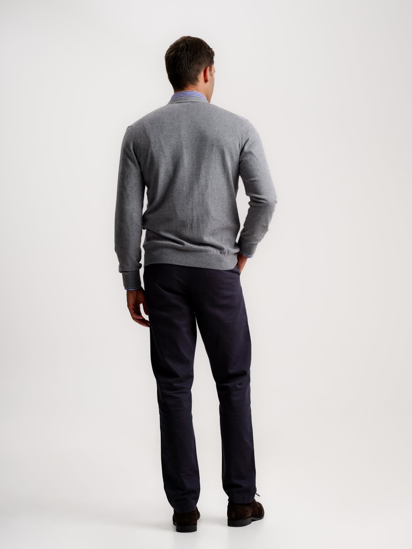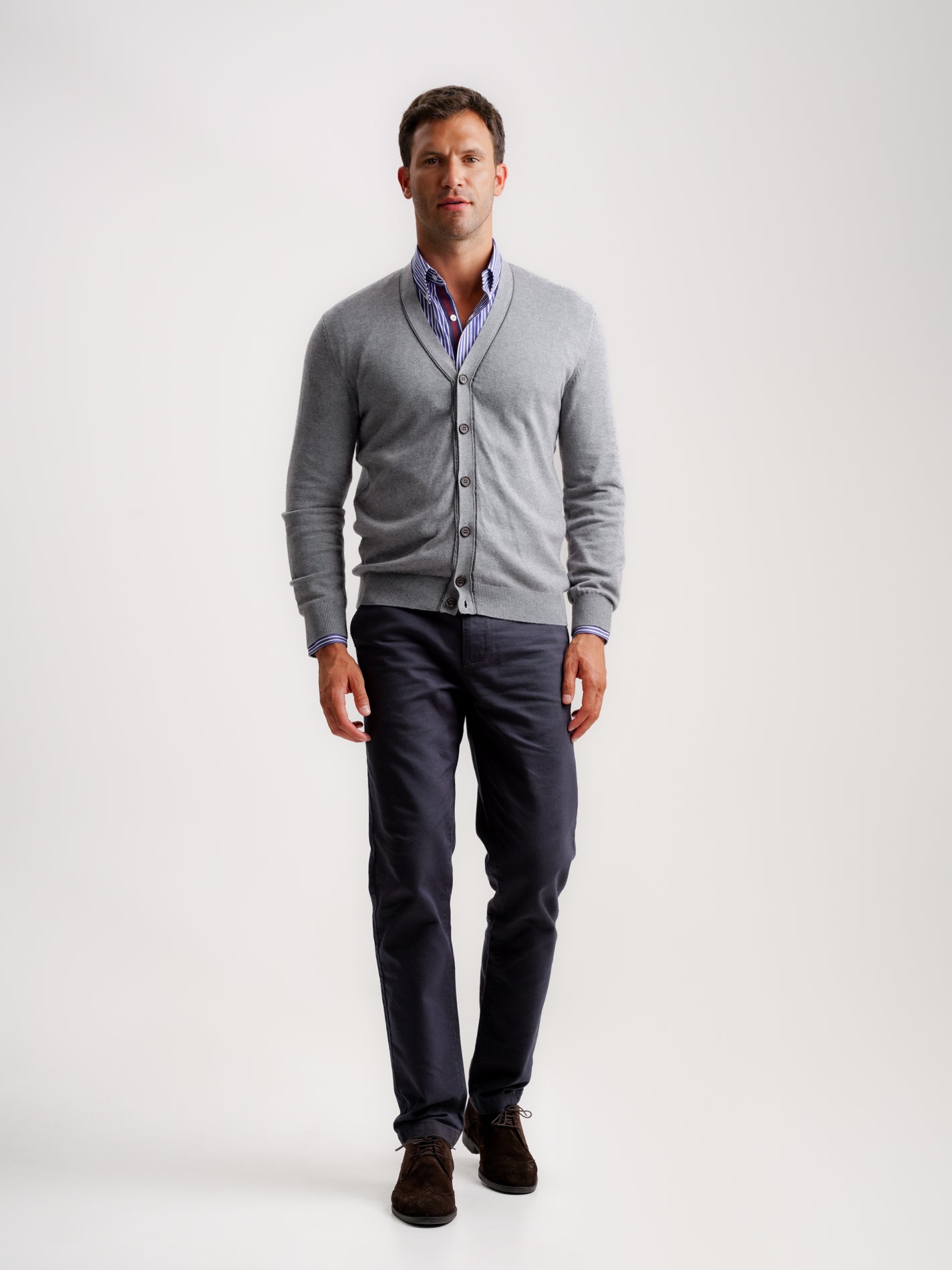 Cardigan Lã Merino Fino Cinzento