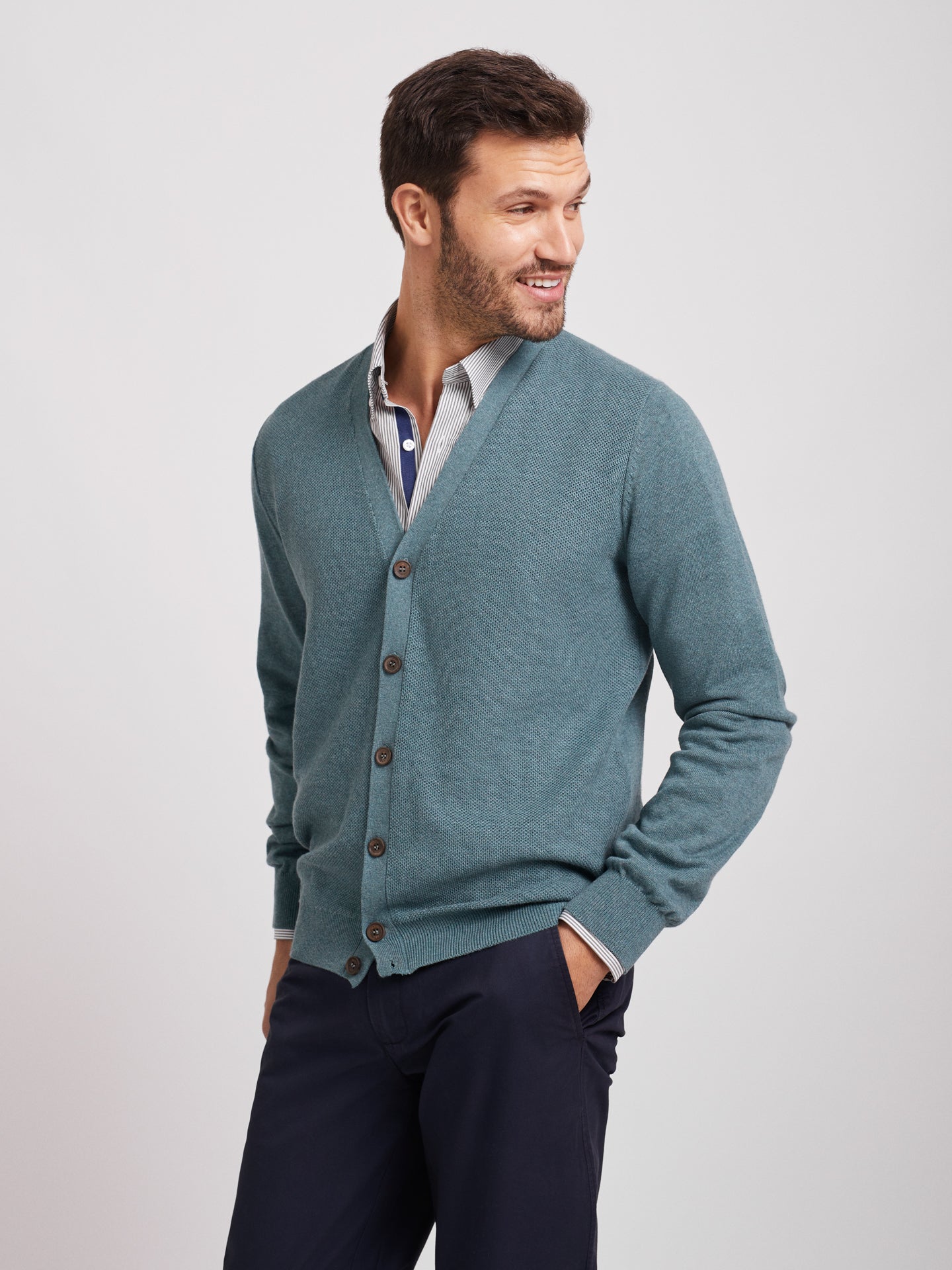 Cardigan verde em algodão orgânico com botões