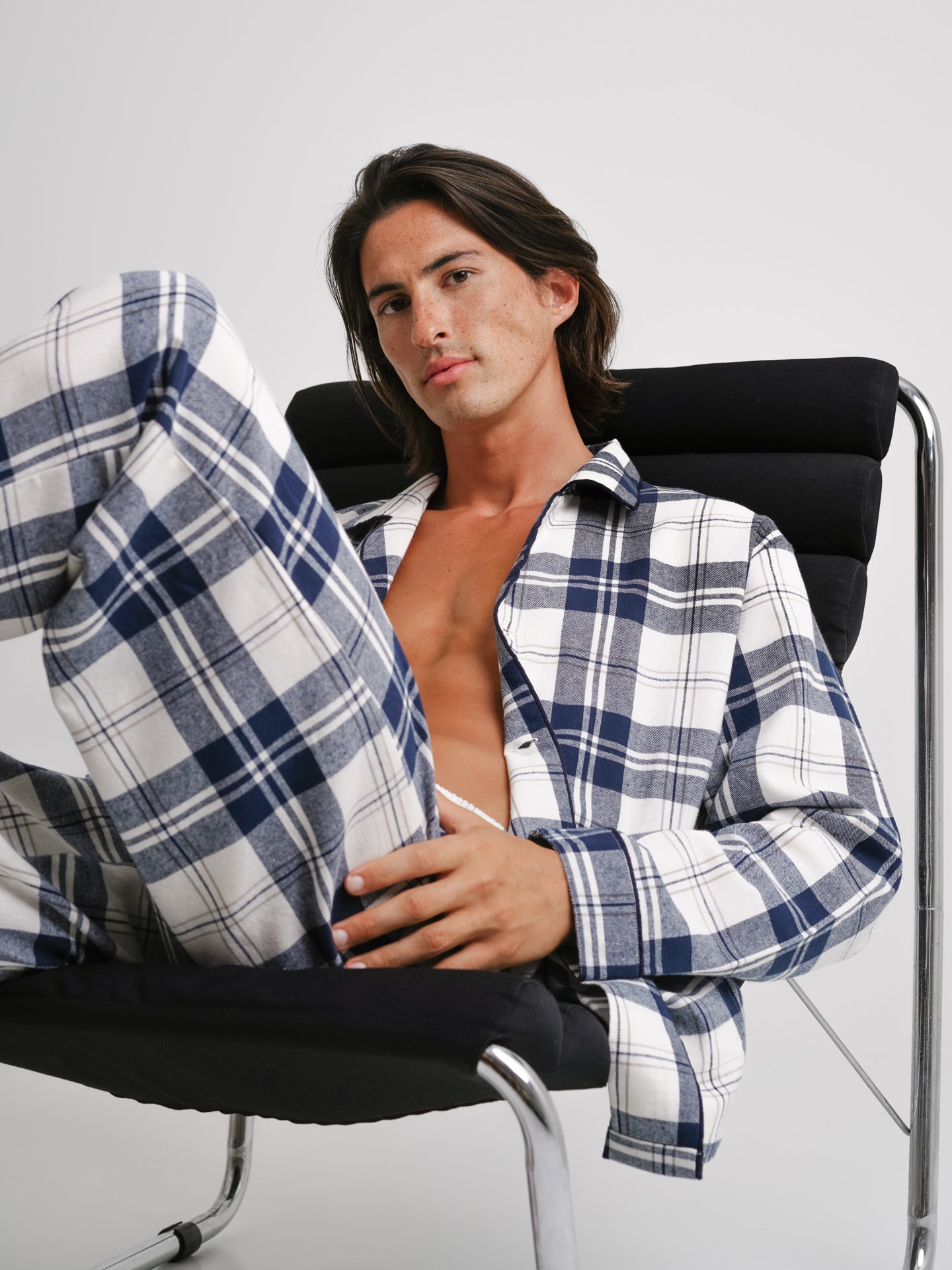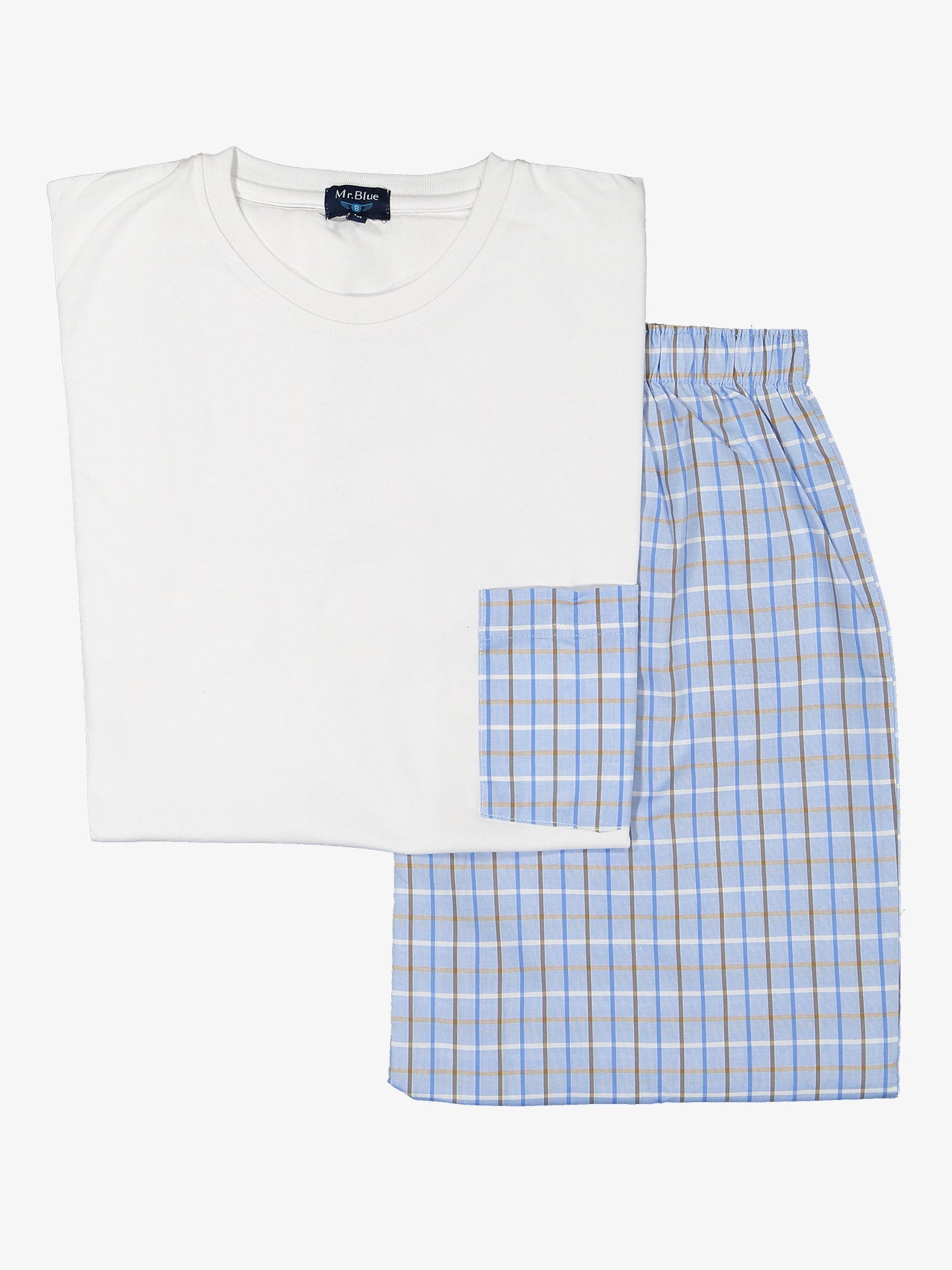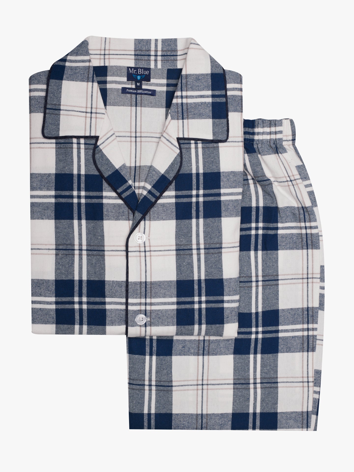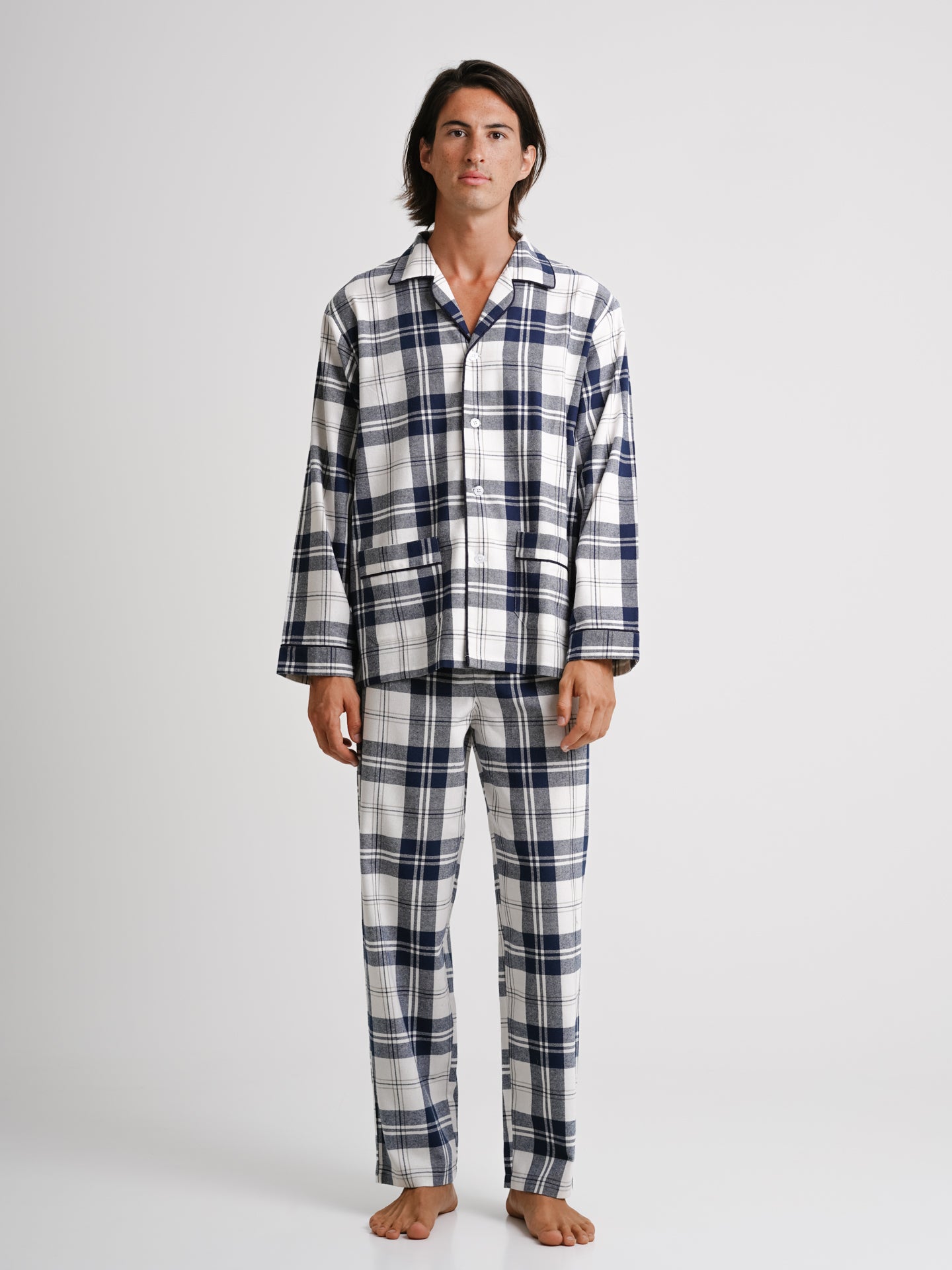 Pijama clássico manga comprida de riscas finas azul claro e branco