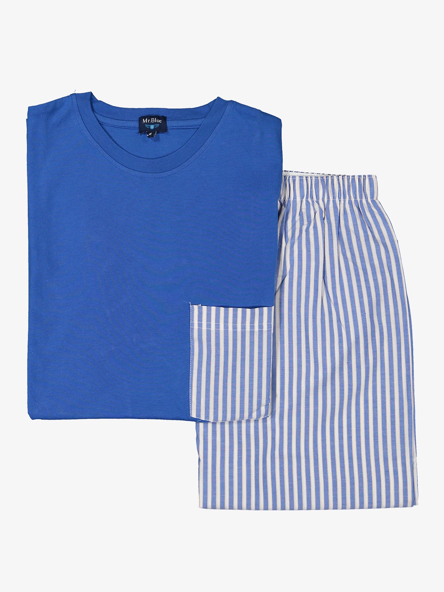 Pijamas Desportivo Calçao e T-shirt riscas grossas azul escuro e branco