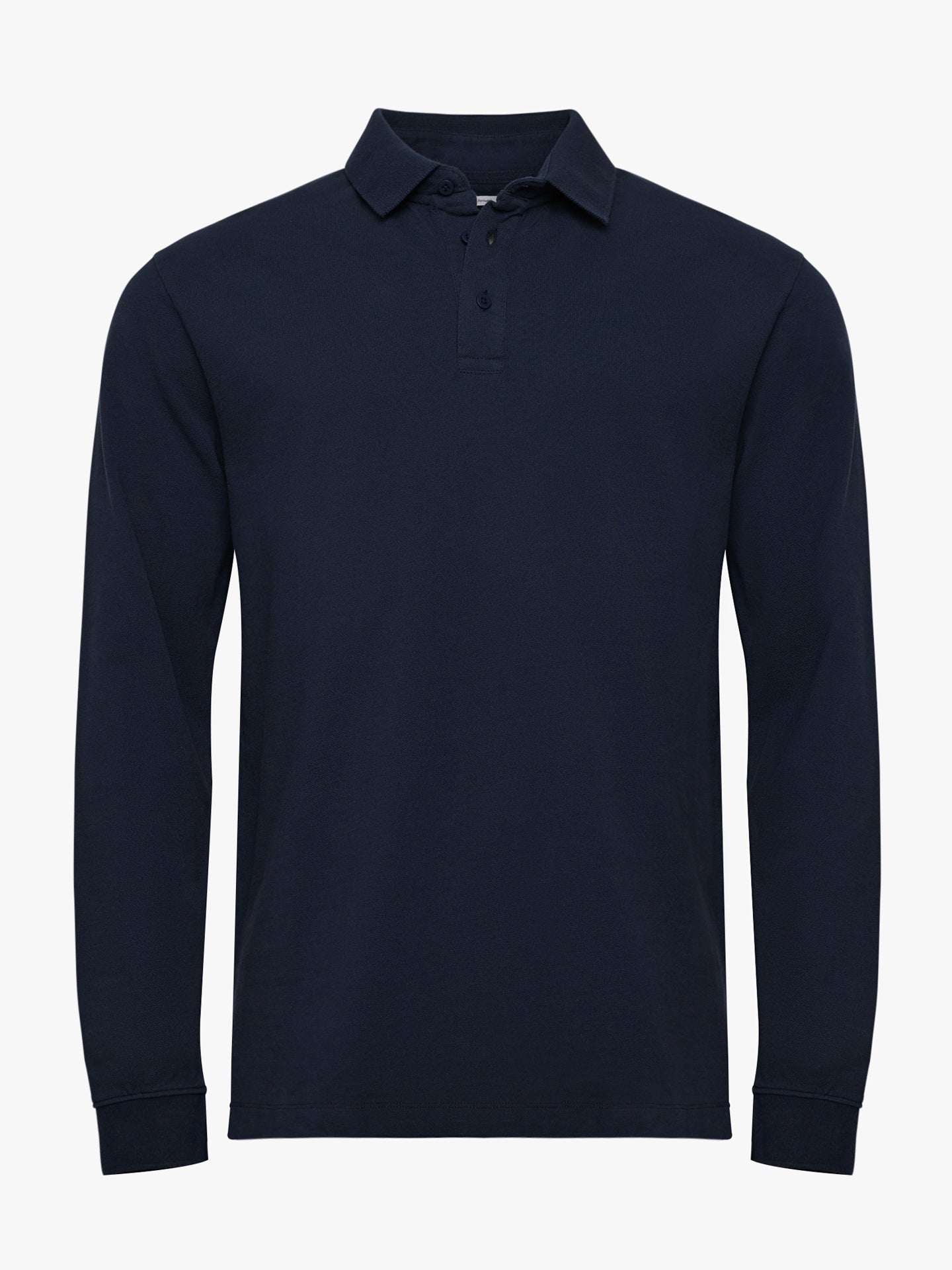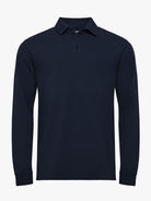 Polo Regular Fit Piquet Azul De Algodão Manga Comprida Liso Sem Logo e Sem Bolso