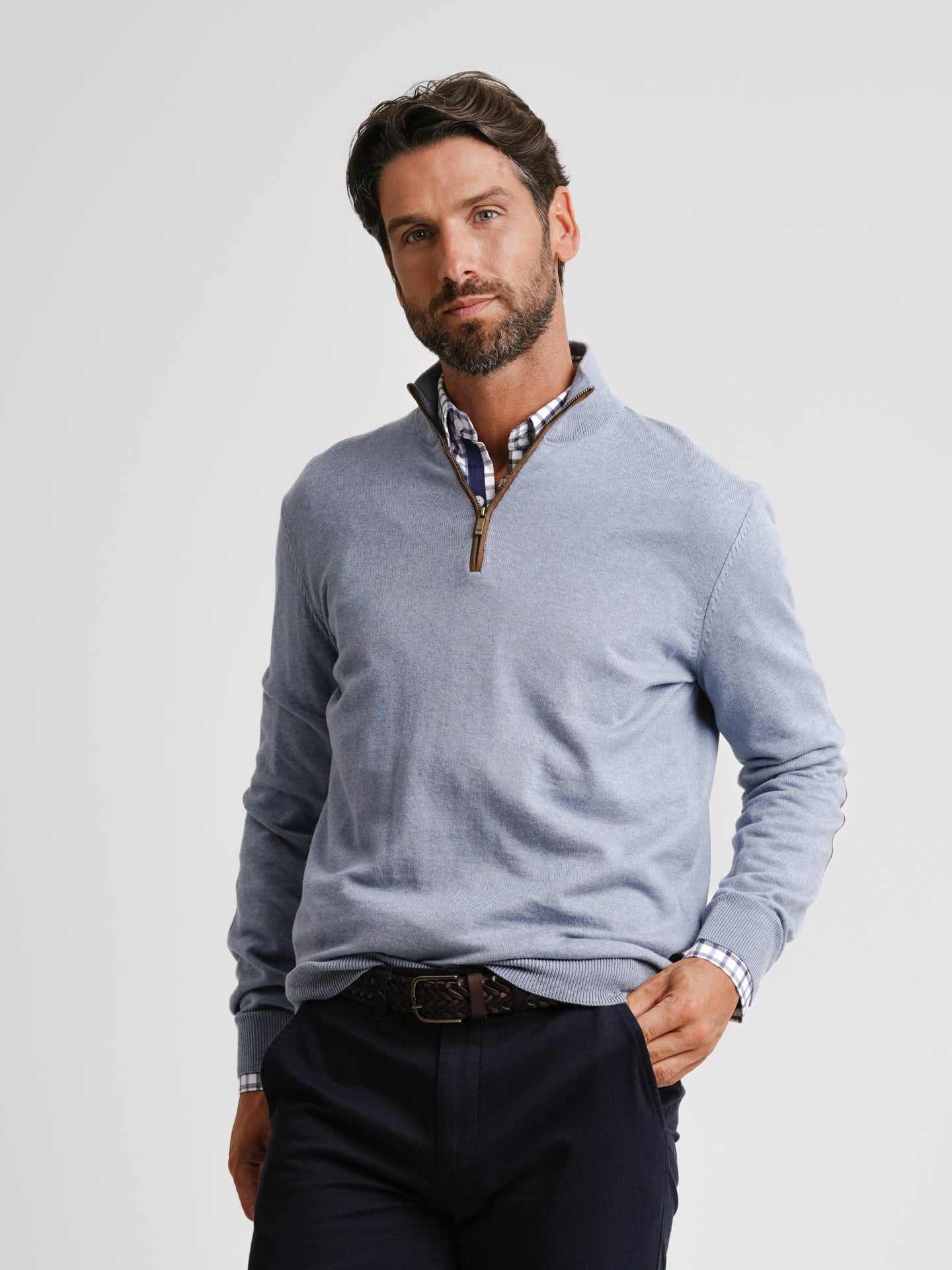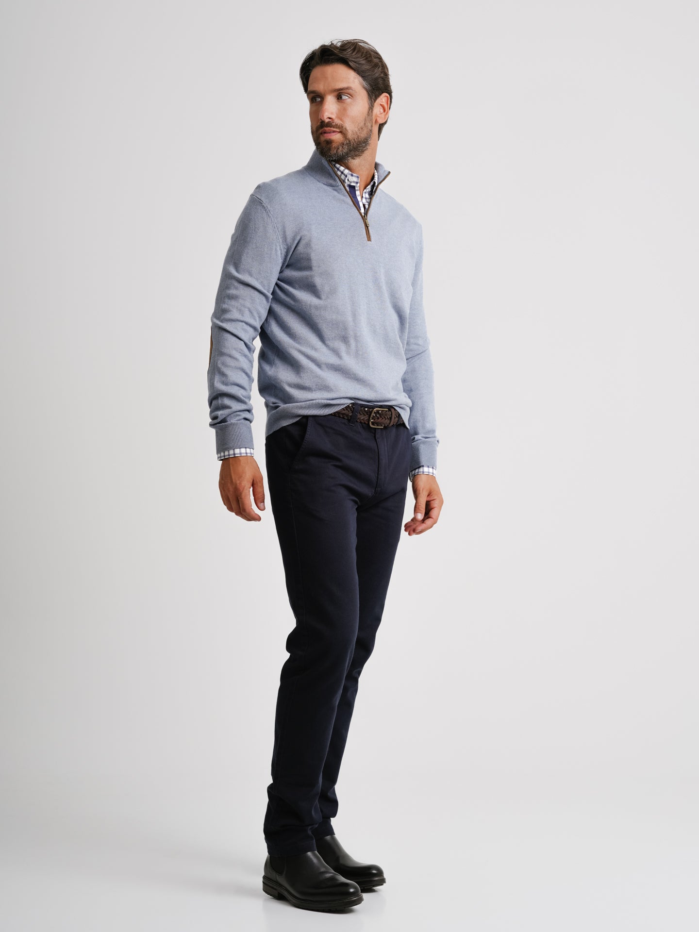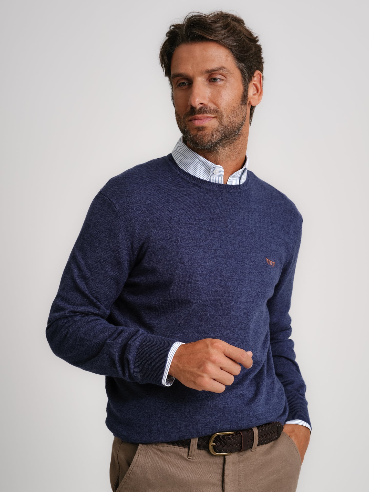 Pullover algodão e caxemira decote em V com detalhe colarinho