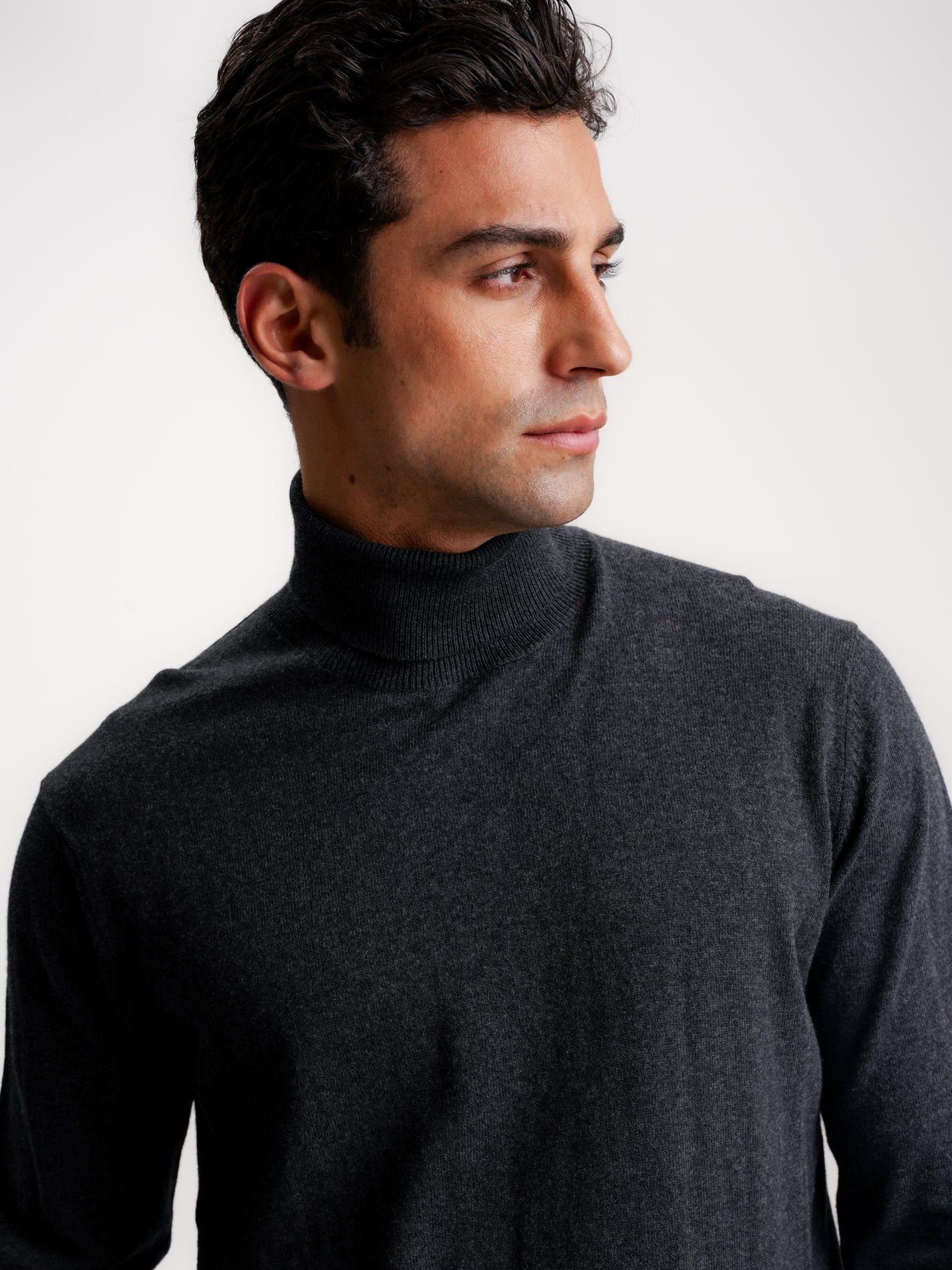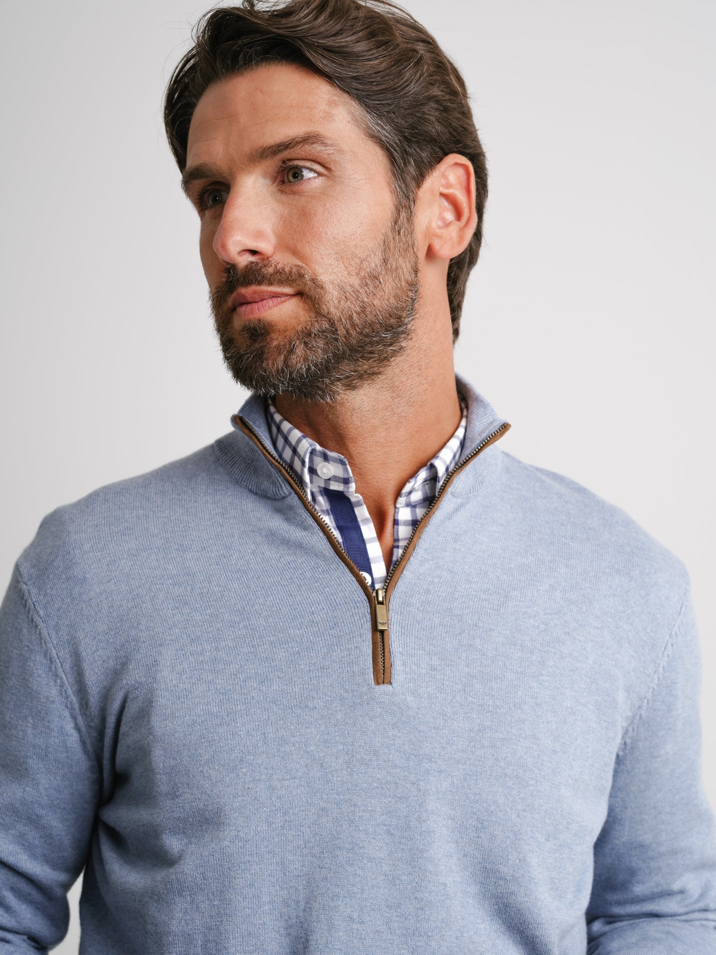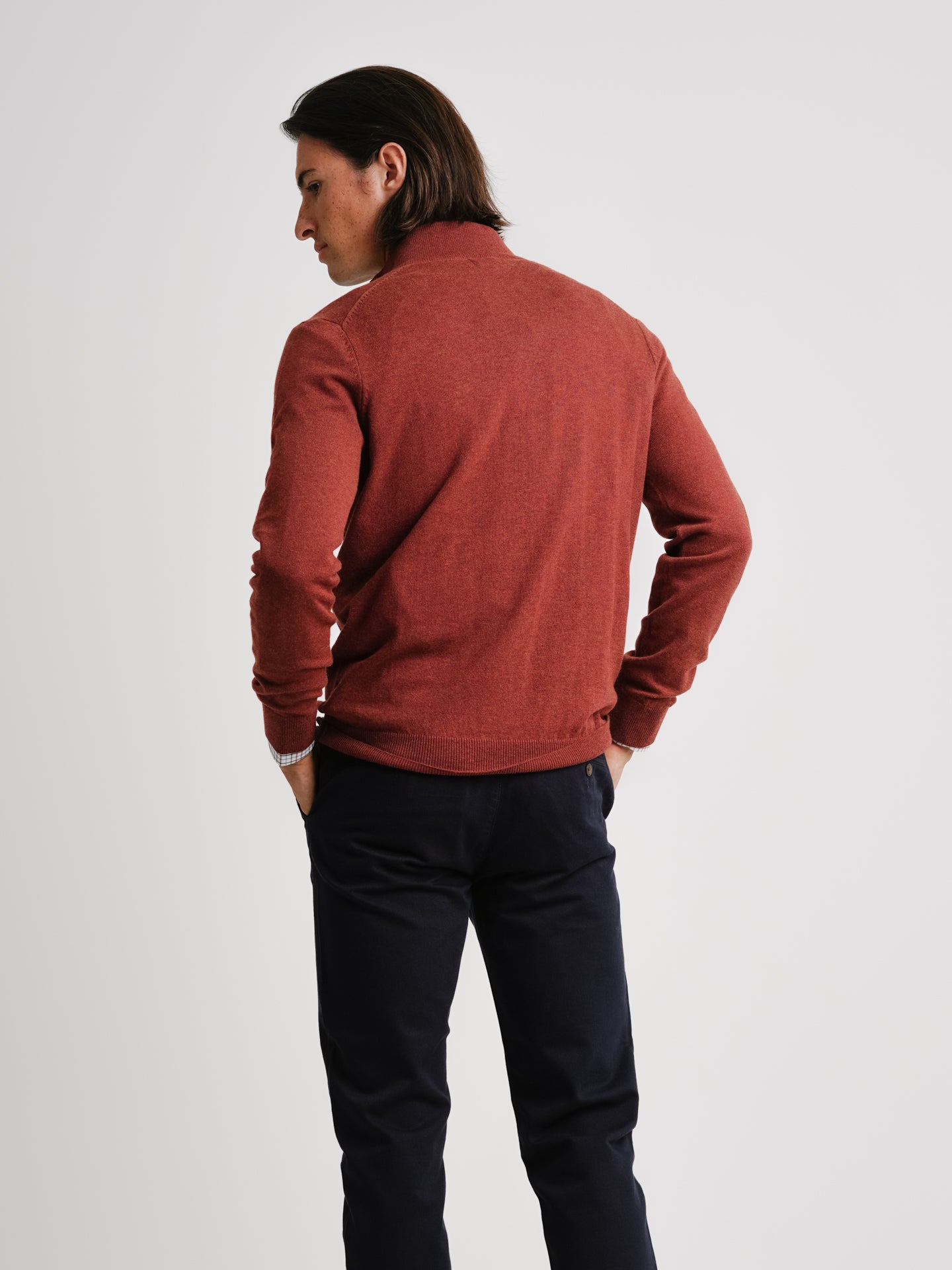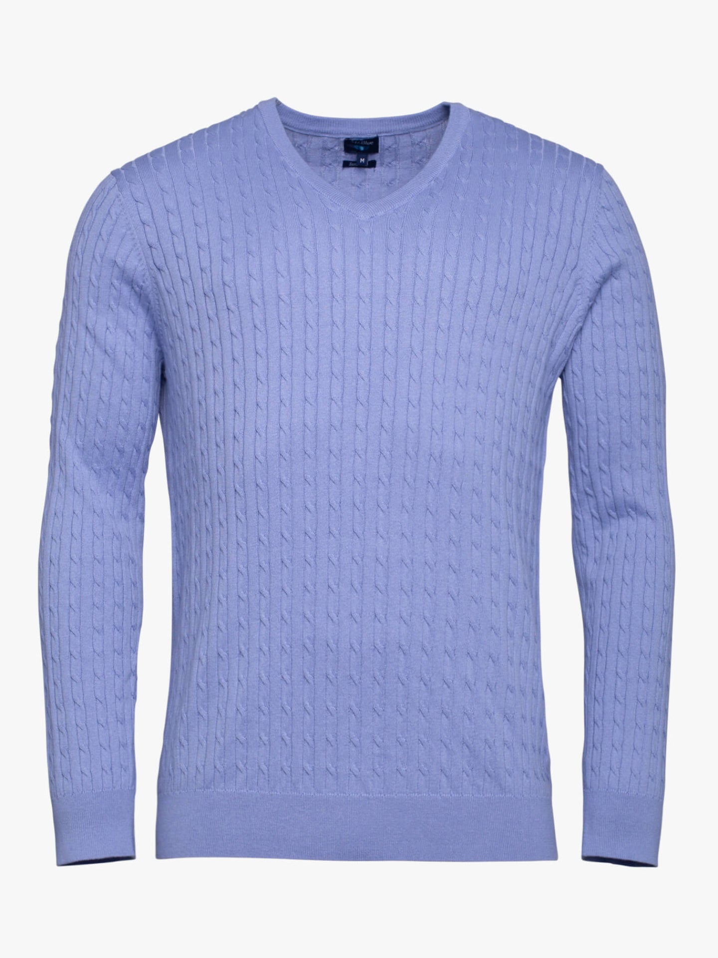 Pullover algodão e caxemira decote em V com detalhe colarinho