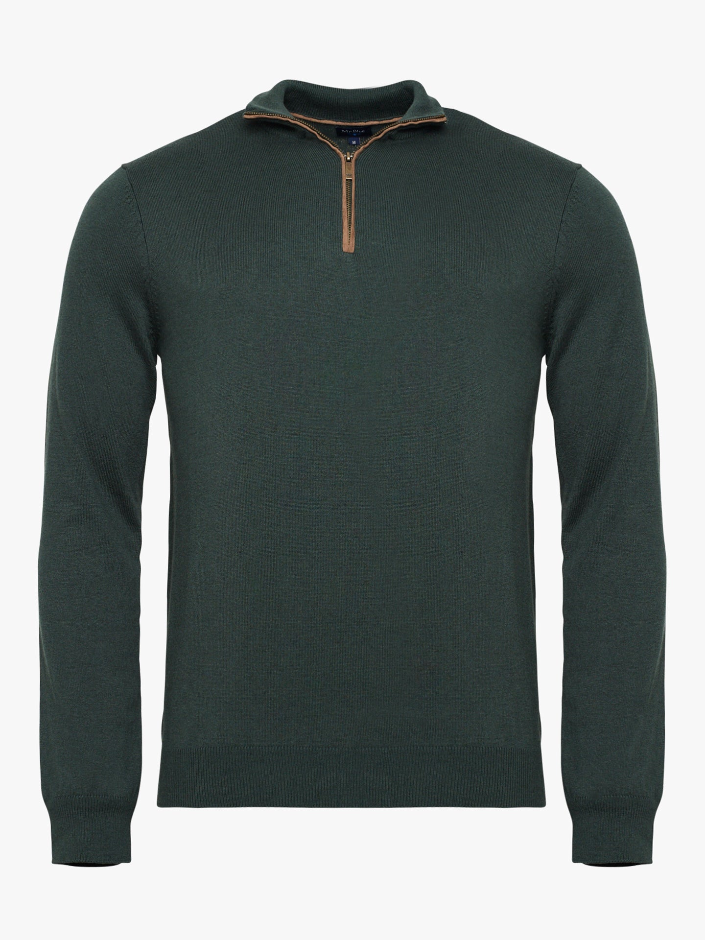 Camisola verde escuro em algodão decote em V com cotoveleiras