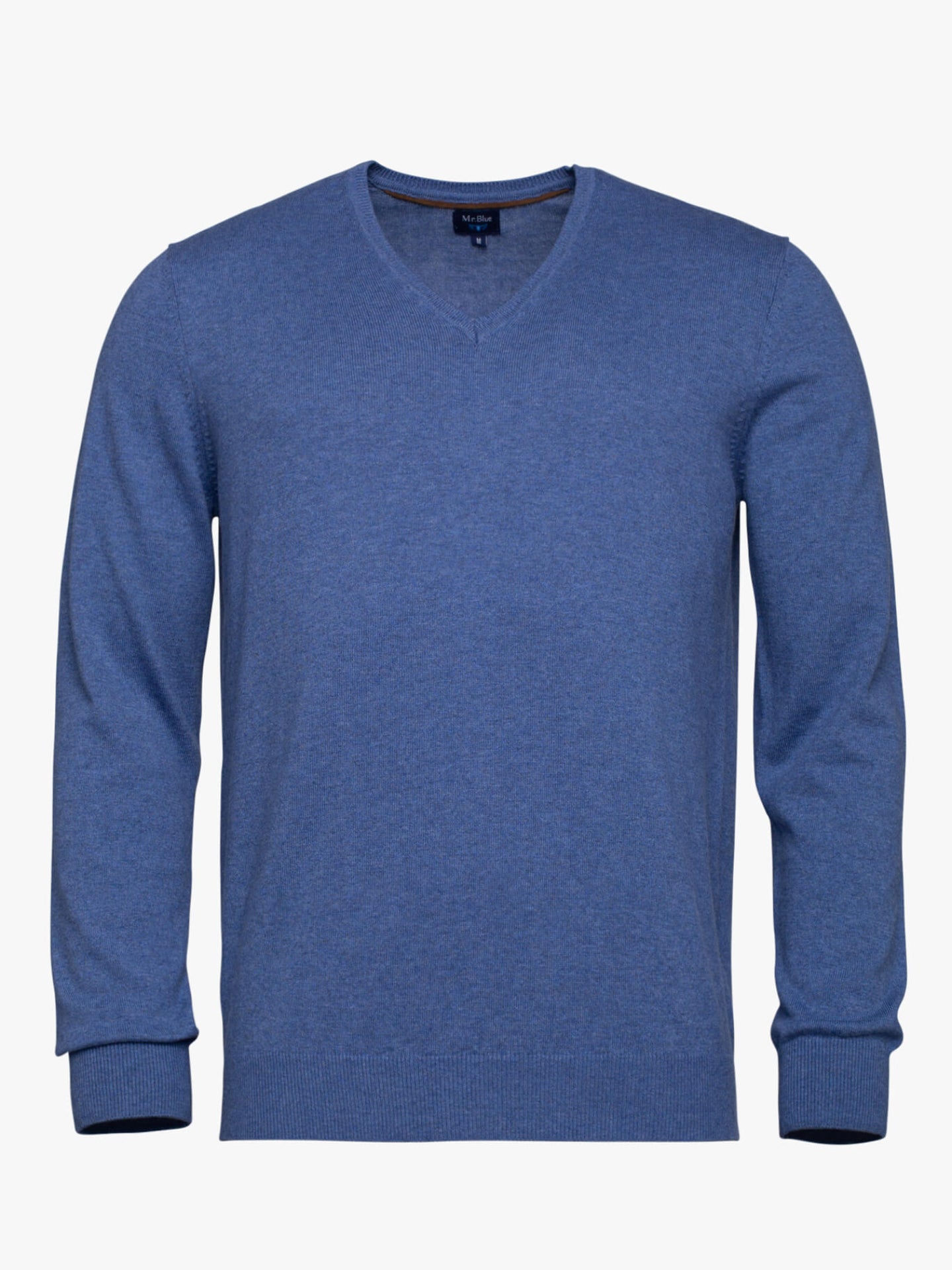 Camisola homem em algodão e caxemira azul escuro com decote em V. Peça Indispensável no seu guarda roupa. Ideal para um fim de semana ou um dia de trabalho descontraído. Ideal para usar com uma camisa.