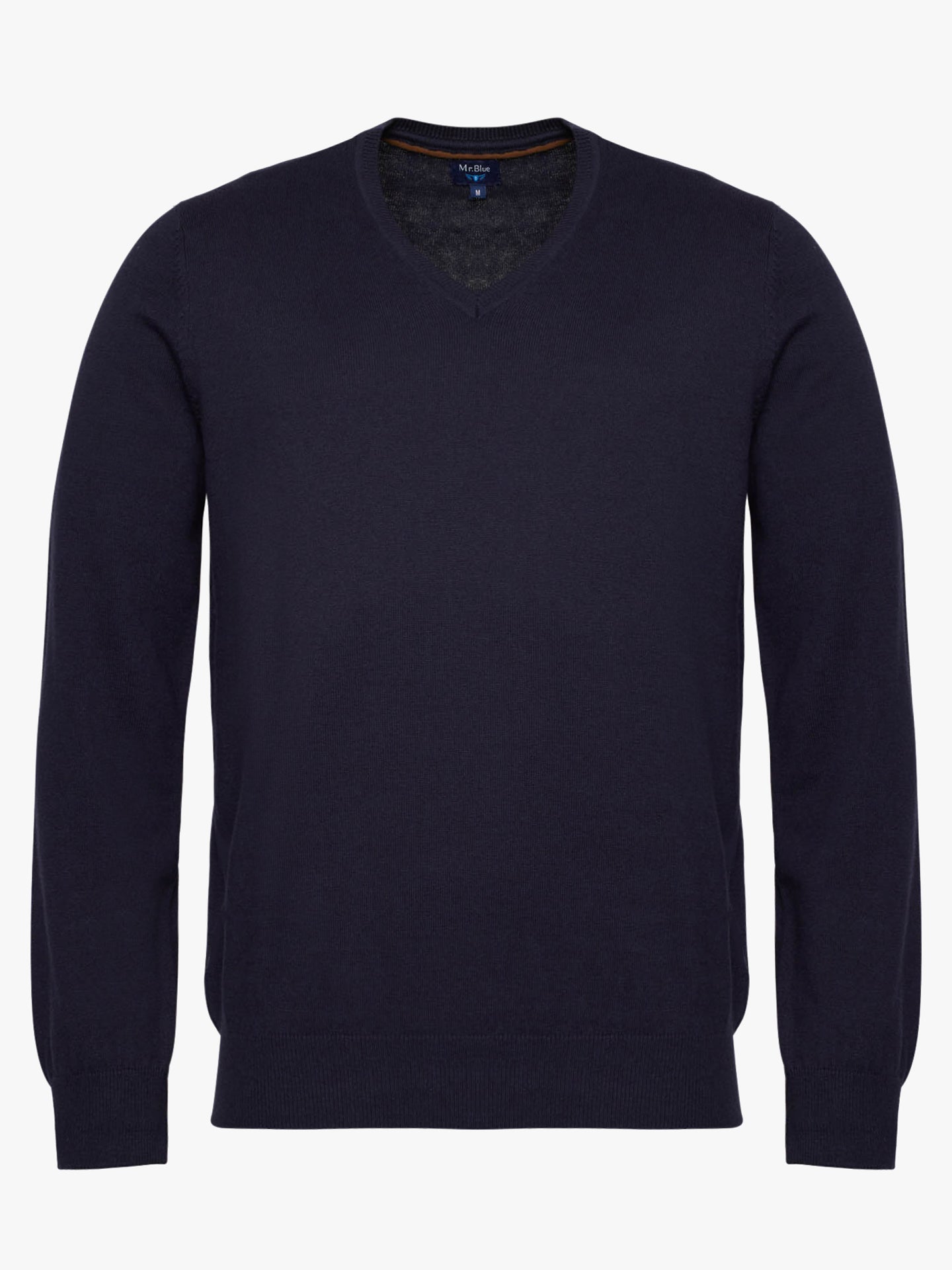 Camisola de Algodão e Caxemira Azul fina com Decote em V
