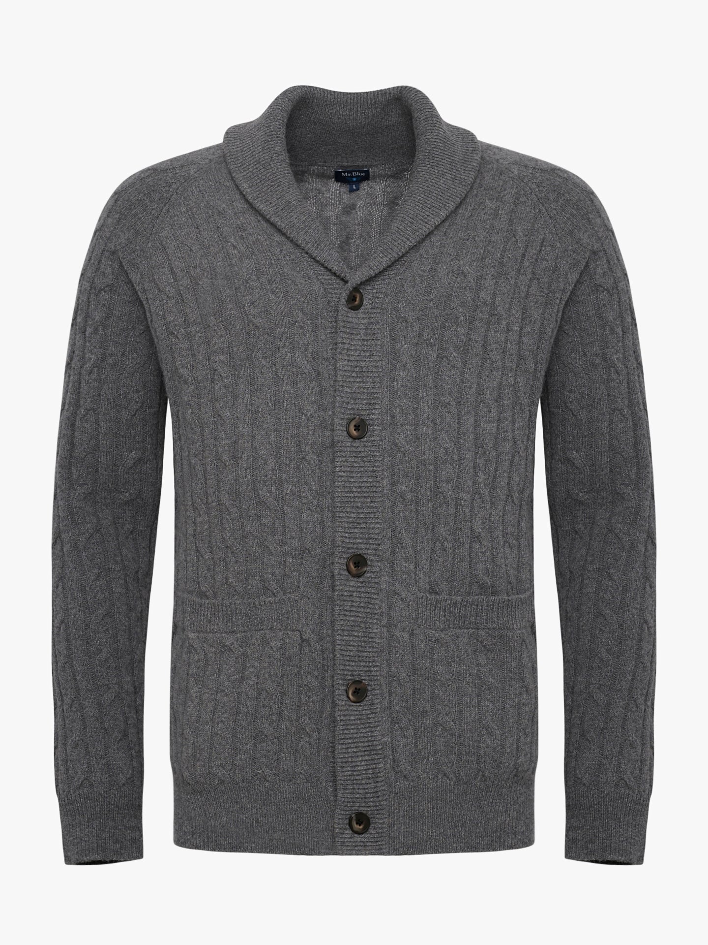 Cardigan Lã Grosso Cinzento Padrão Sem Logo e Sem Bolso