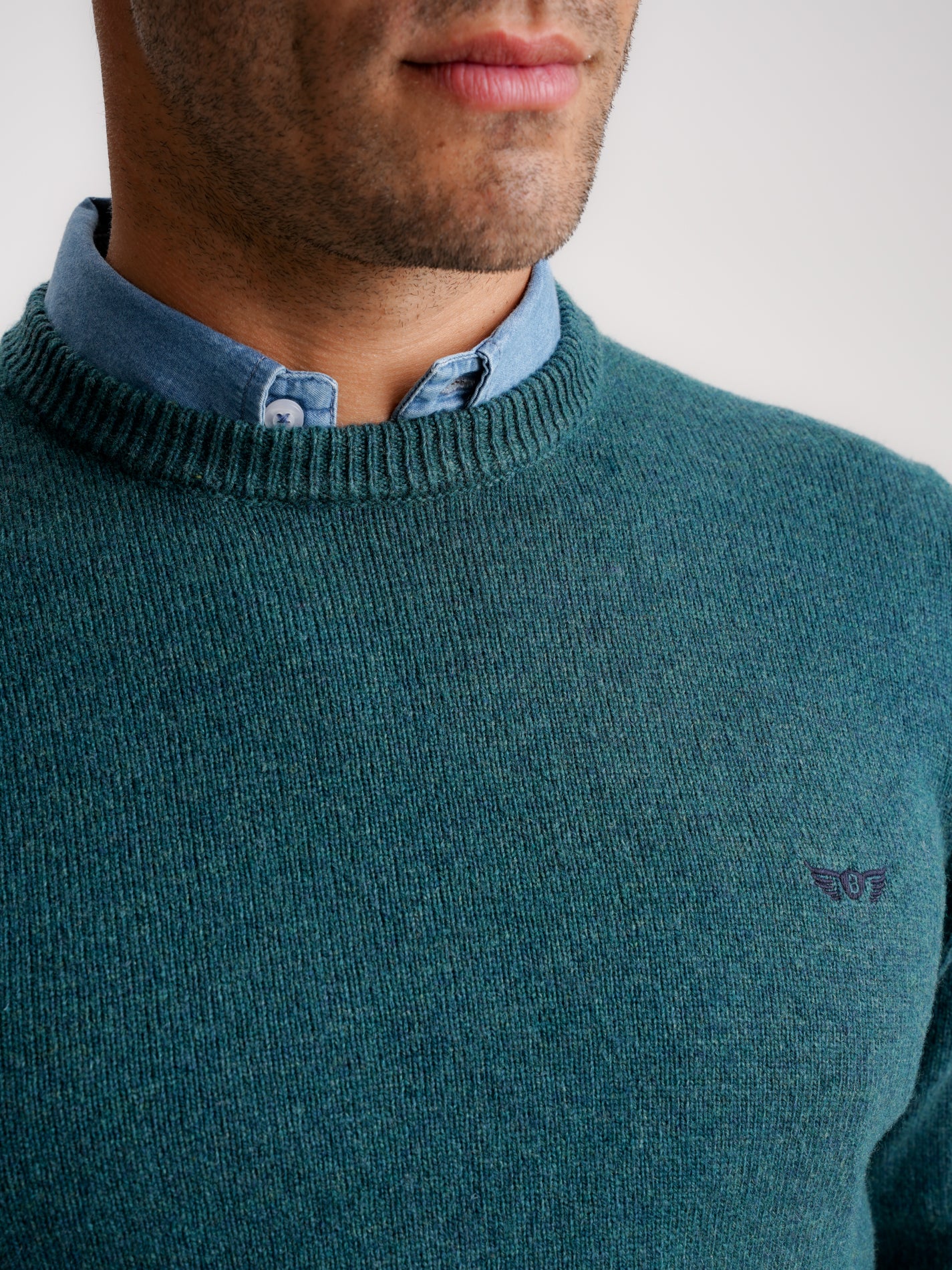 Pullover Lã Grosso Verde Liso Com Logo