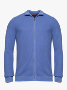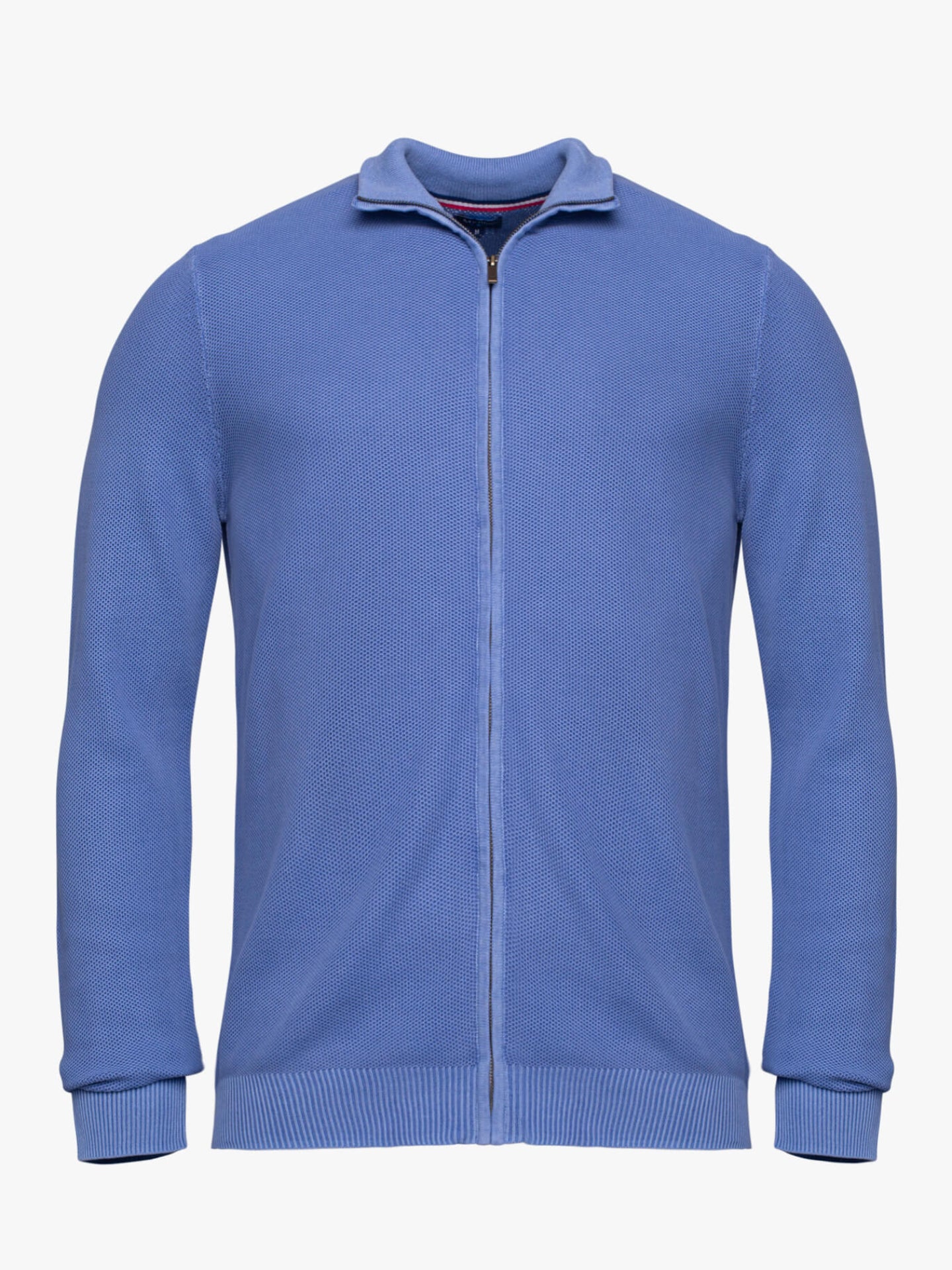 Cardigan homem 100% algodão azul claro com fecho de correr. Peça Indispensável no seu guarda roupa. Ideal para um fim de semana ou um dia de trabalho descontraído. Ideal para usar com uma camisa.