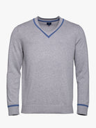 Camisola homem 100% algodão cinzento com decote em V. Peça Indispensável no seu guarda roupa. Ideal para um fim de semana ou um dia de trabalho descontraído. Ideal para usar com uma camisa.