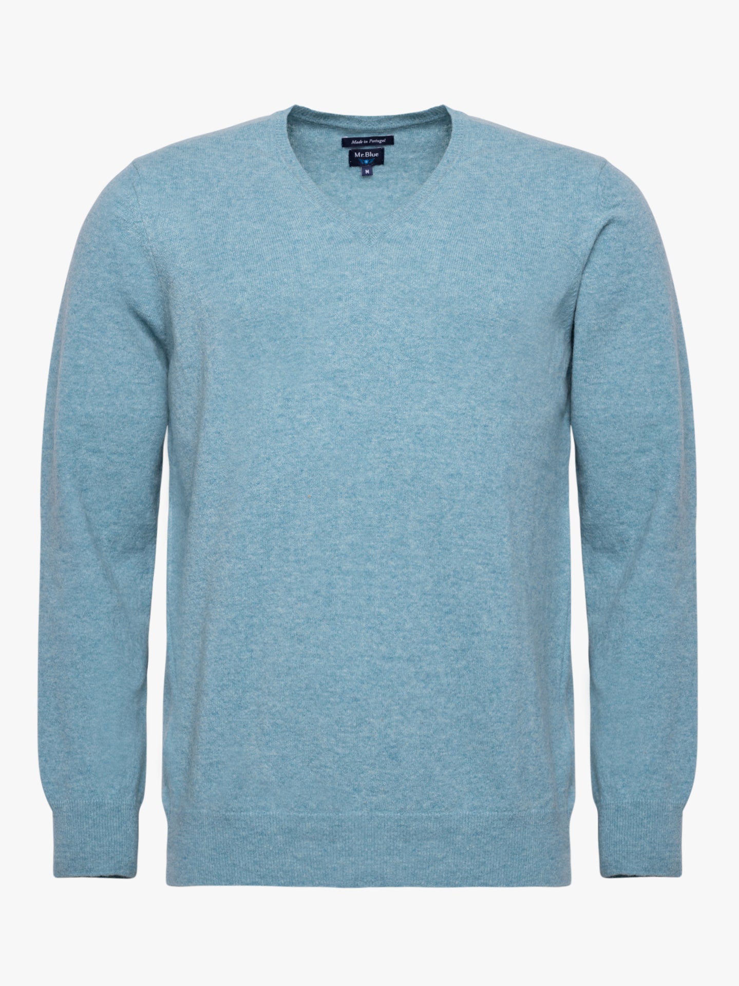Camisola algodão e caxemira azul com decote em V