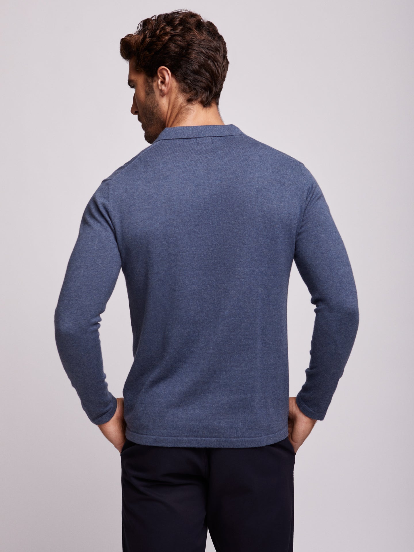 Camisola algodão e caxemira gola com fecho liso azul